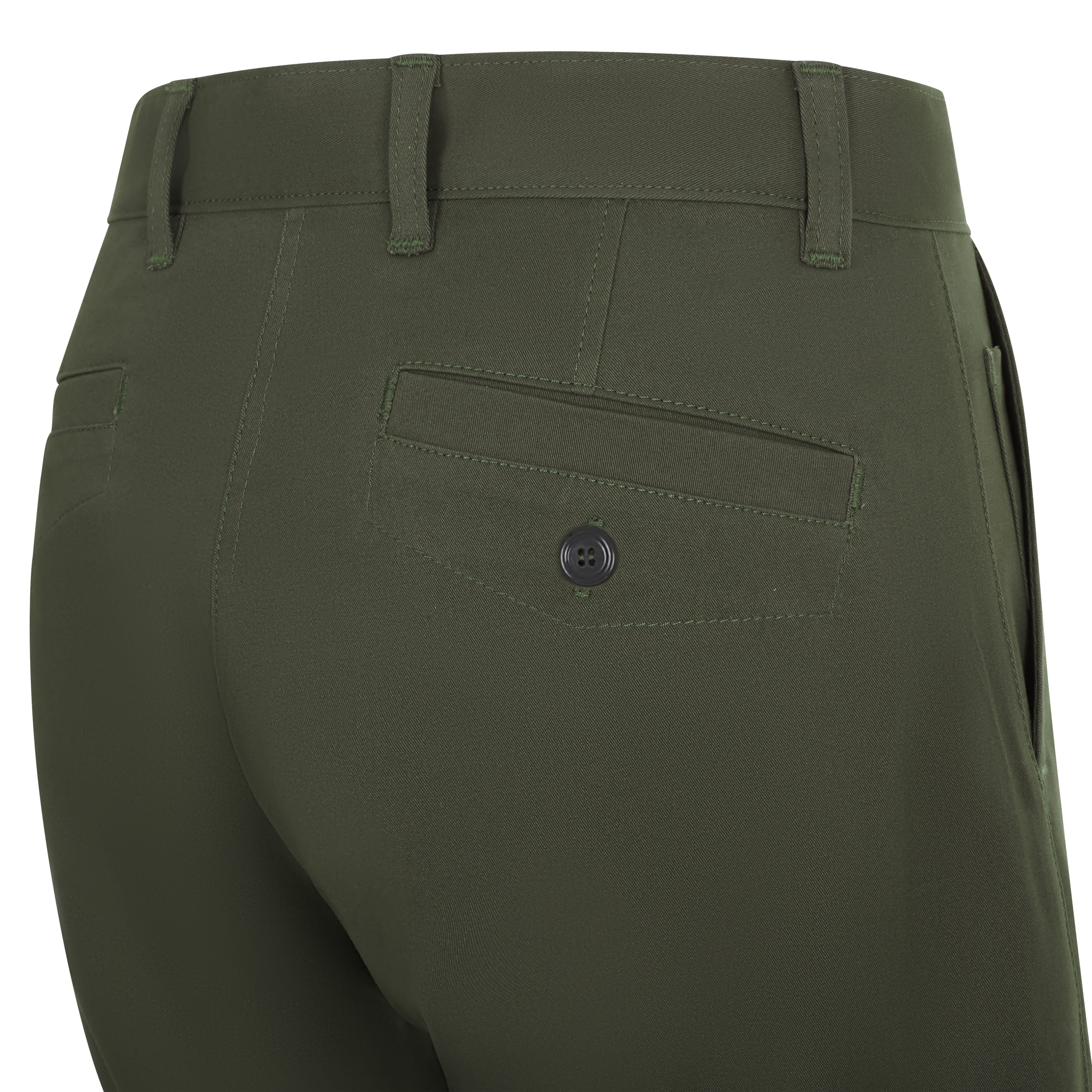 Cinco bolsillos: 2 bolsillos franceses; 1 bolsillo relojero y 2 bolsillos traseros de vivo con botón