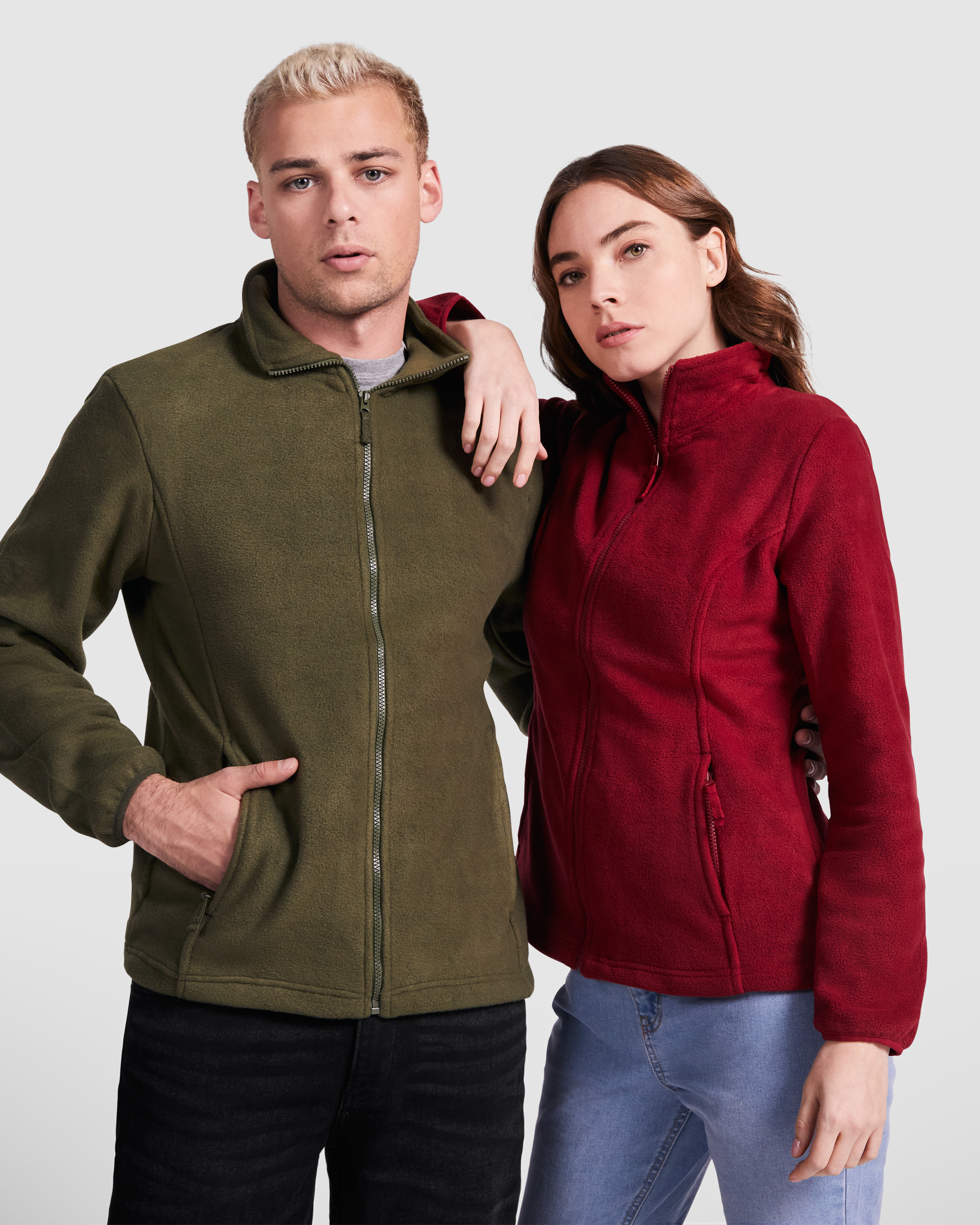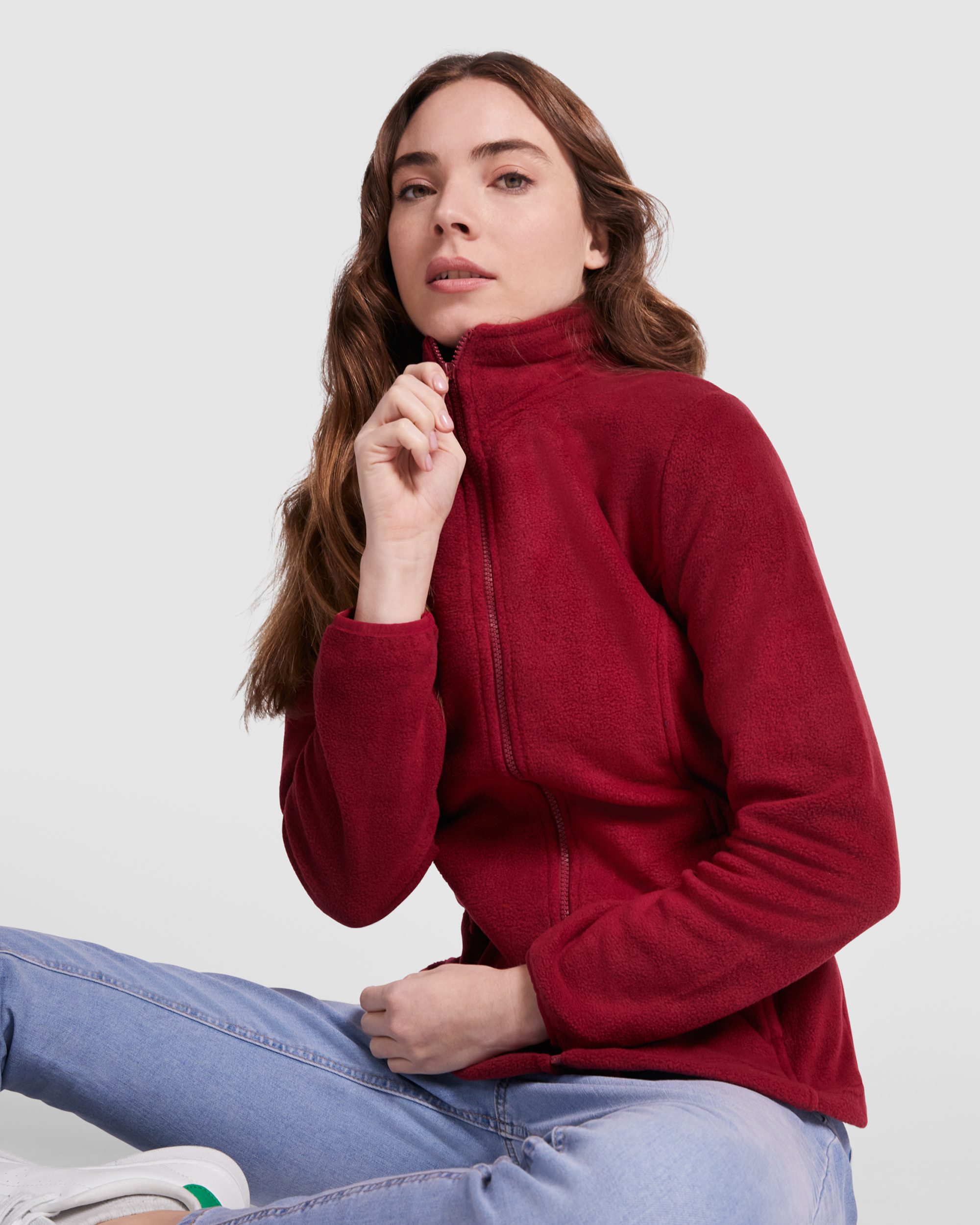 Chaqueta polar, con cuello alto forrado y cubre costuras reforzado a tono. Cremallera inyectada a tono con tirador en tejido. Puños con ribete elástico. Bolsillos laterales. Corte entallado. Bajo con ajustadores interiores laterales.