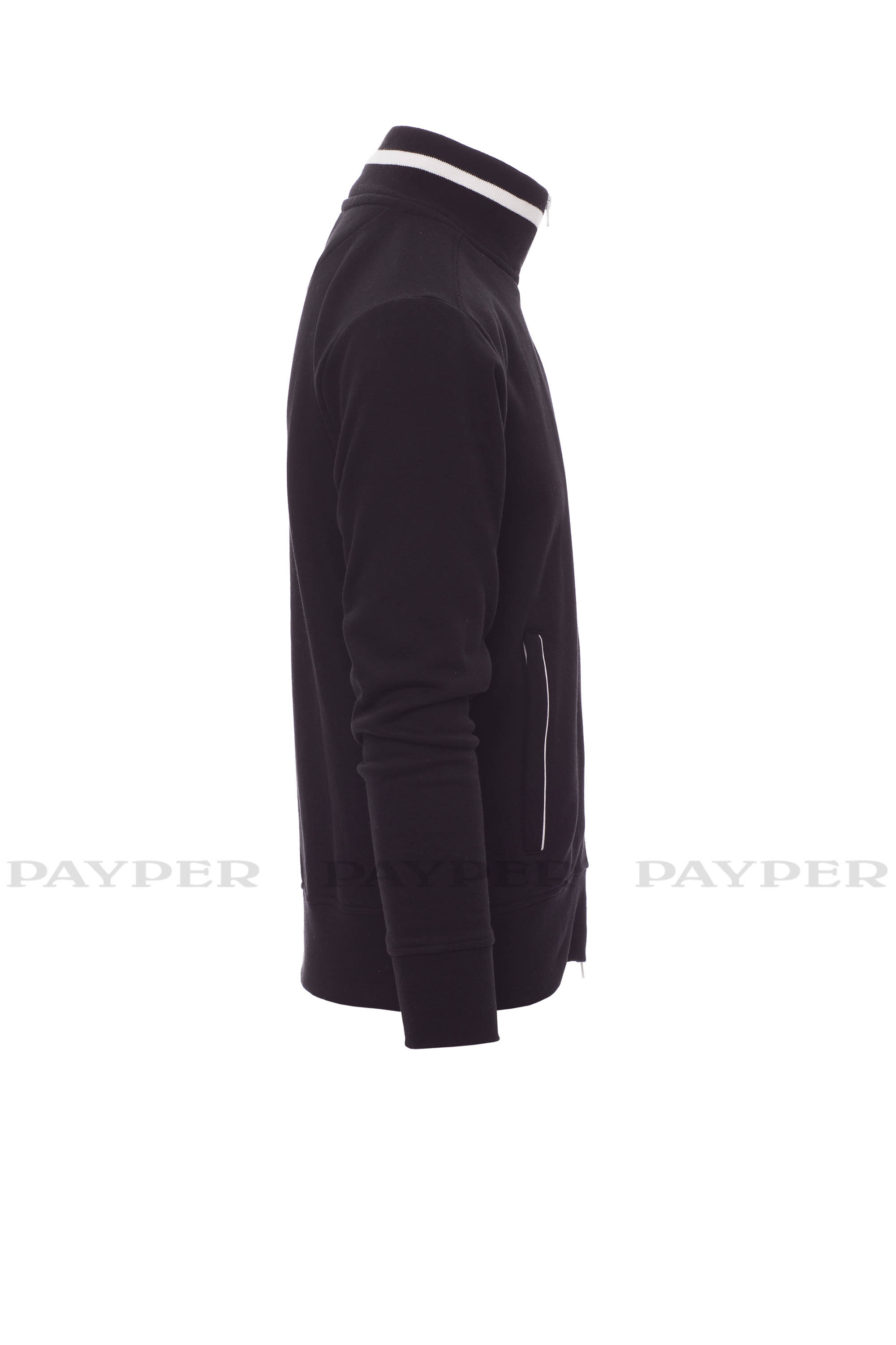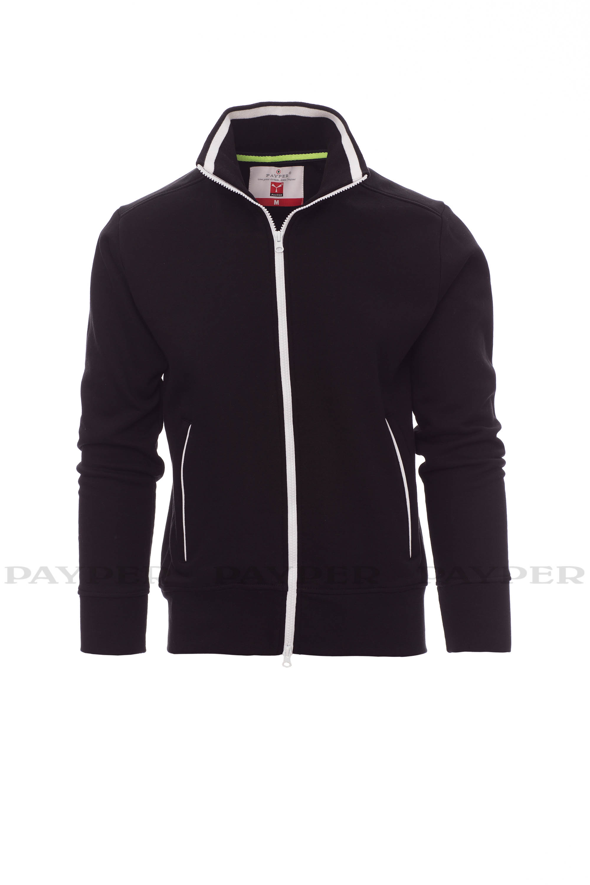 Sudadera para hombre, con cremallera SBS completa de plástico de color de contraste y doble tirador metálico. Cuello elástico con ribete de contraste, bolsillos laterales con ribete de contraste, mangas ajustadas, dos bolsillos exteriores con cremallera de contraste, puños y dobladillo elásticos, costuras reforzadas.
