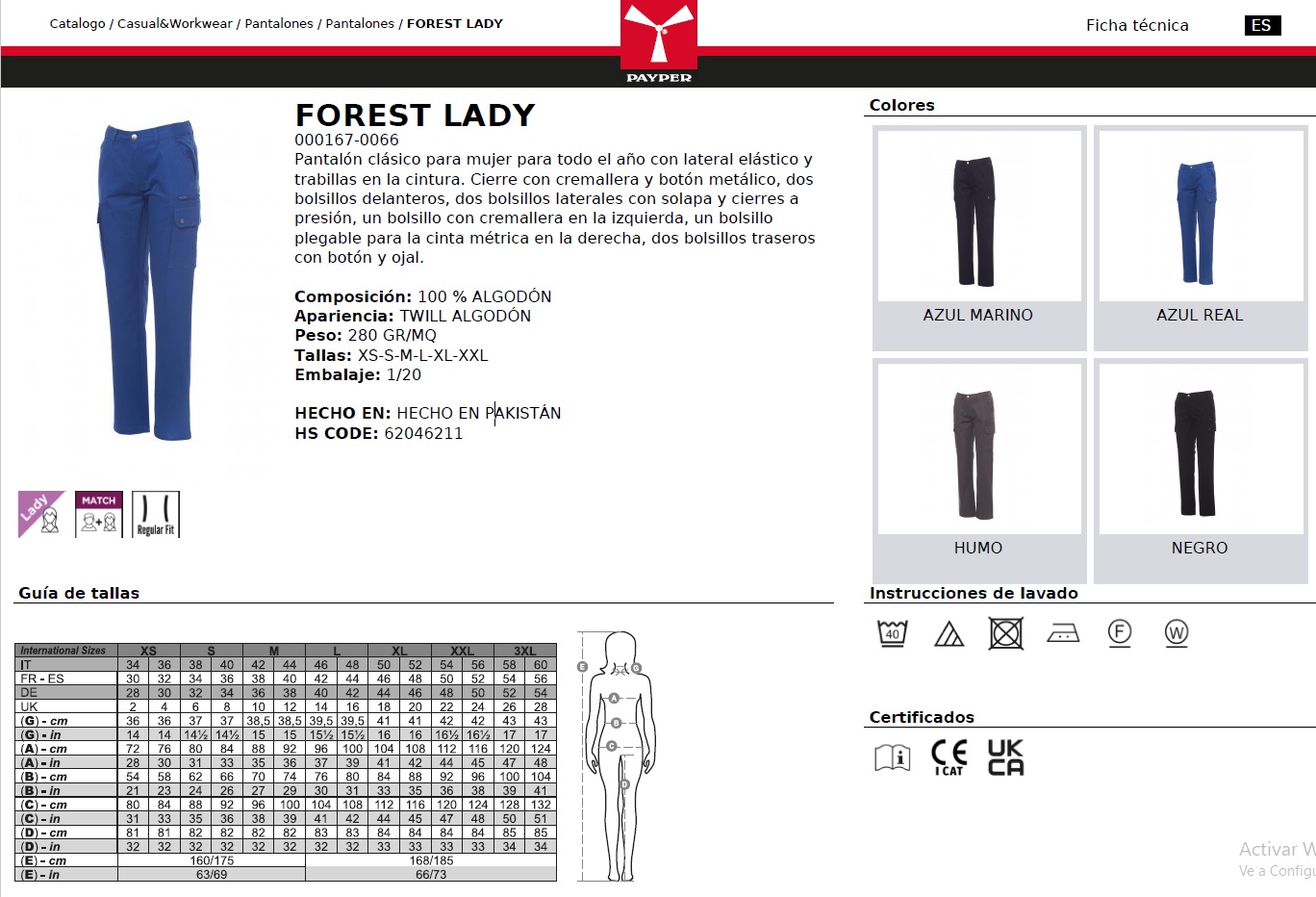 PANTALON FOREST LADY · MULTIBOLSILLOS · 100% ALGODON · CE I CAT