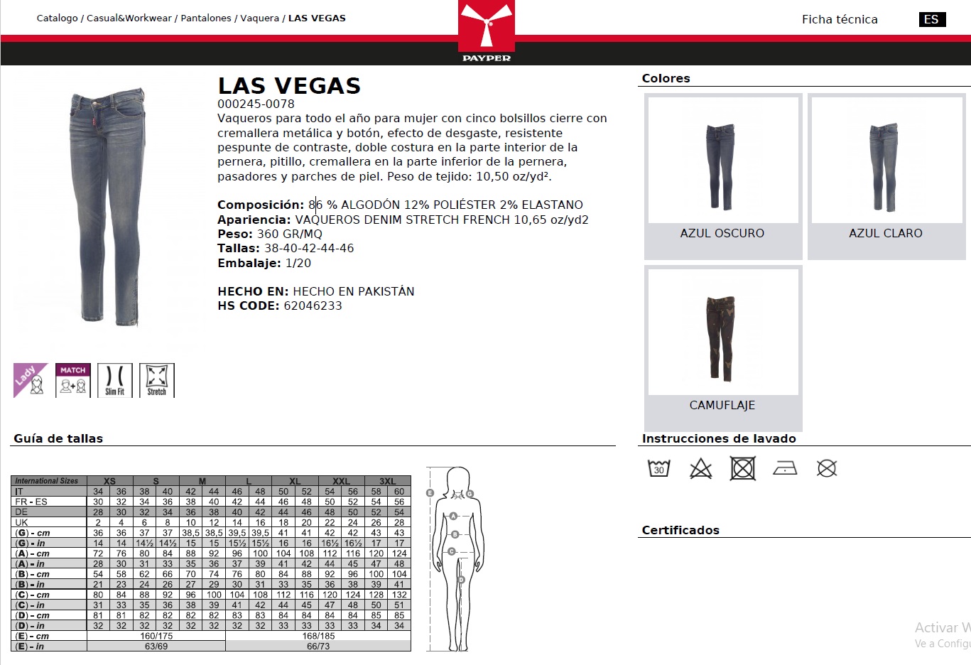 PANTALON VAQUERO LAS VEGAS · ELASTICO/STRETCH · SLIM FIT