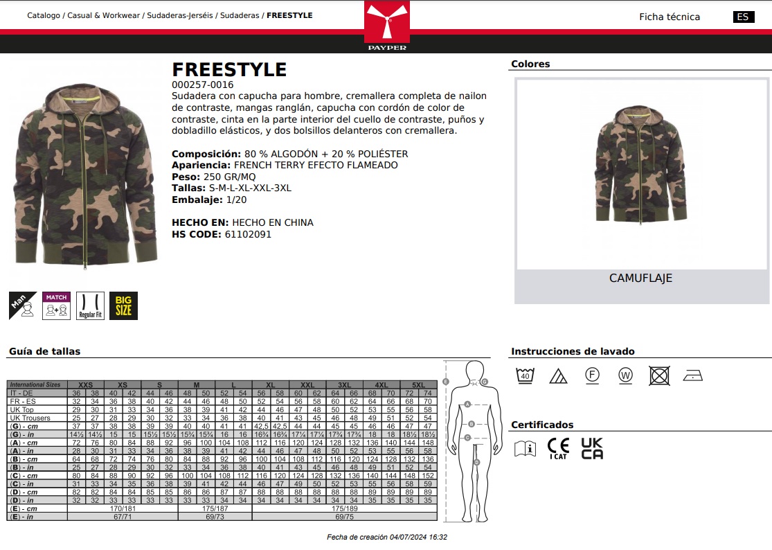 SUDADERA FREESTYLE · CREMALLERA ENTERA · CAPUCHA · CE I CAT