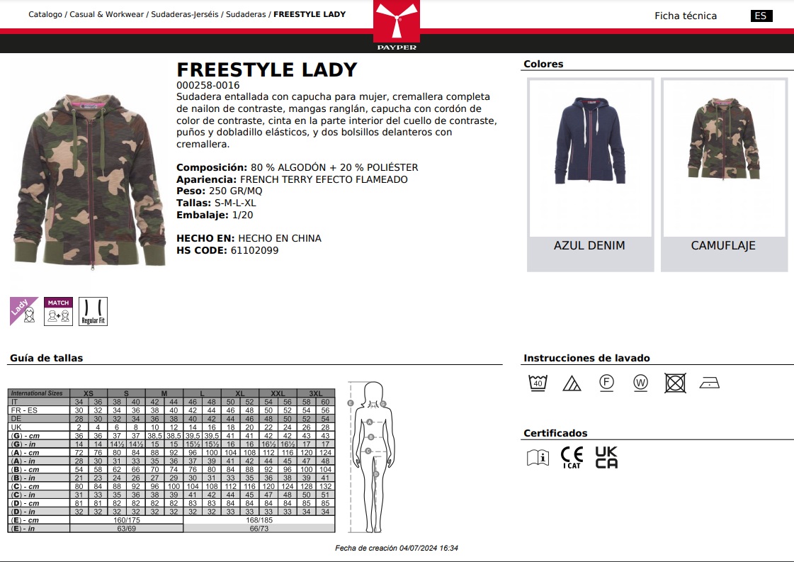 SUDADERA FREESTYLE LADY · CREMALLERA ENTERA · CAPUCHA