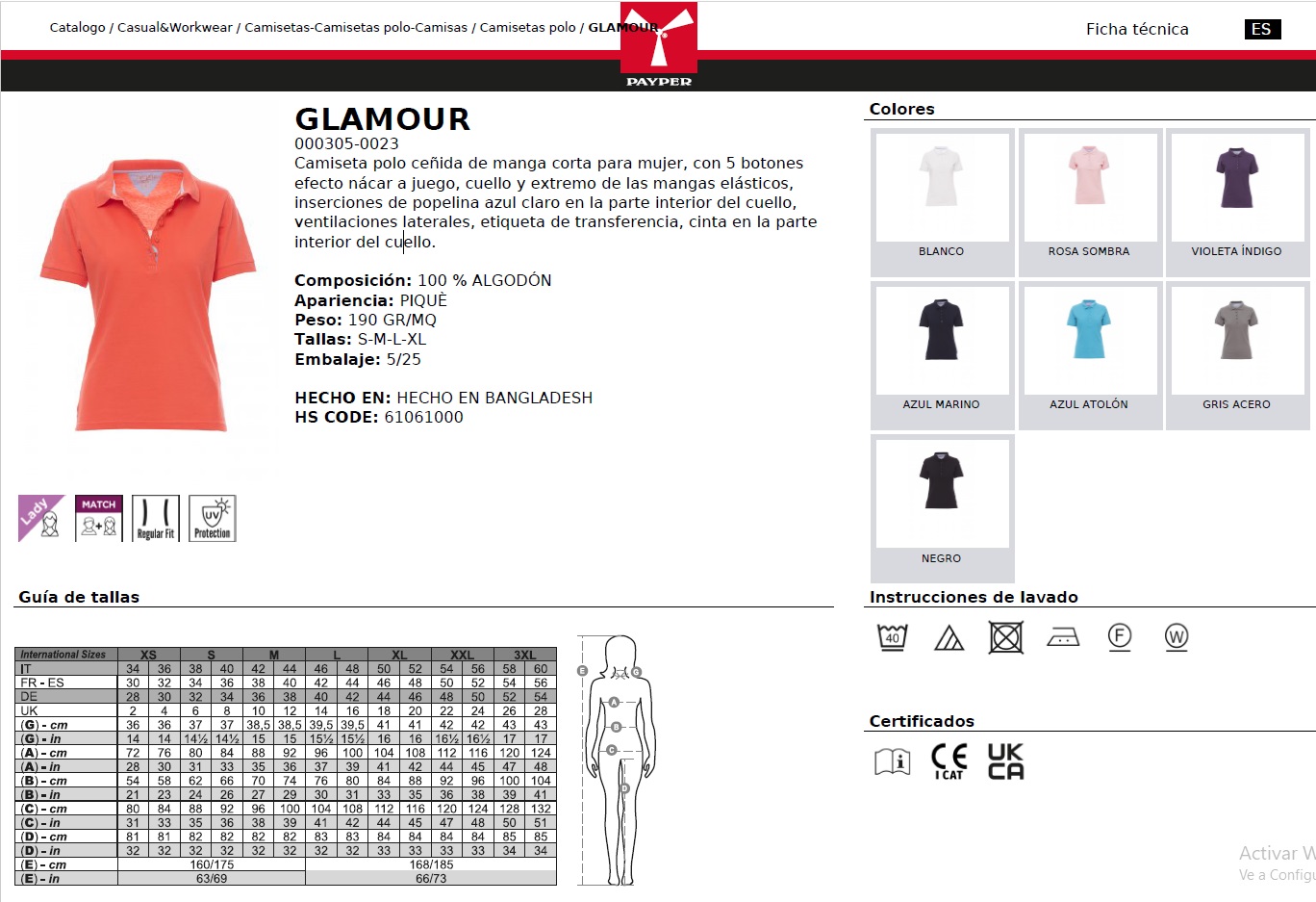 POLO GLAMOUR LADY · MC · 100% ALGODON · CE I CAT · PROTECCION SOLAR >50ºC