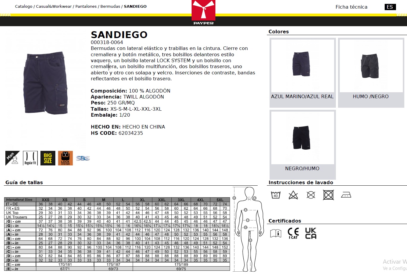 BERMUDA SANDIEGO · MULTIBOLSILLOS · 100% ALGODON · CE I CAT - Bermudas - PayPer - Hombre