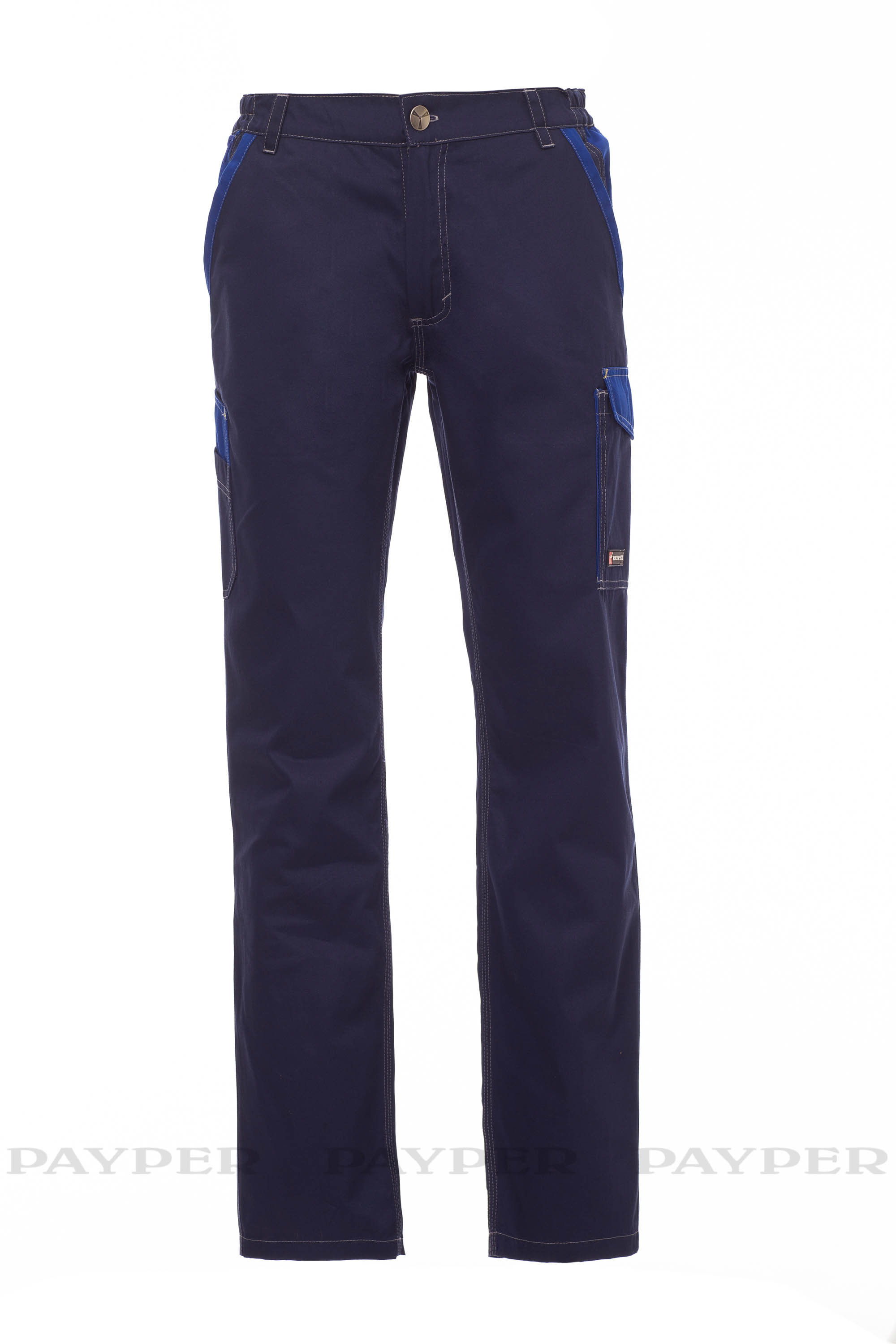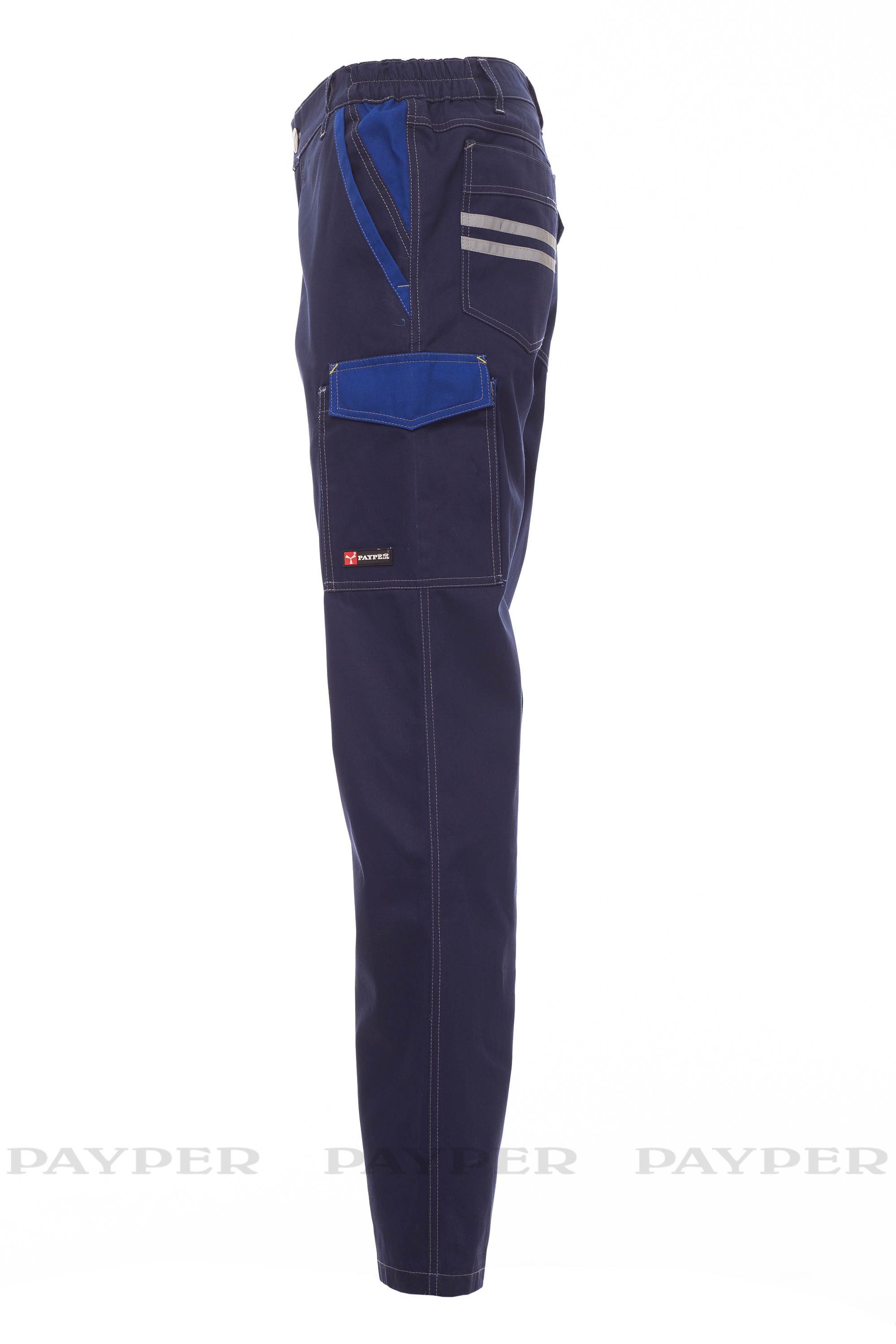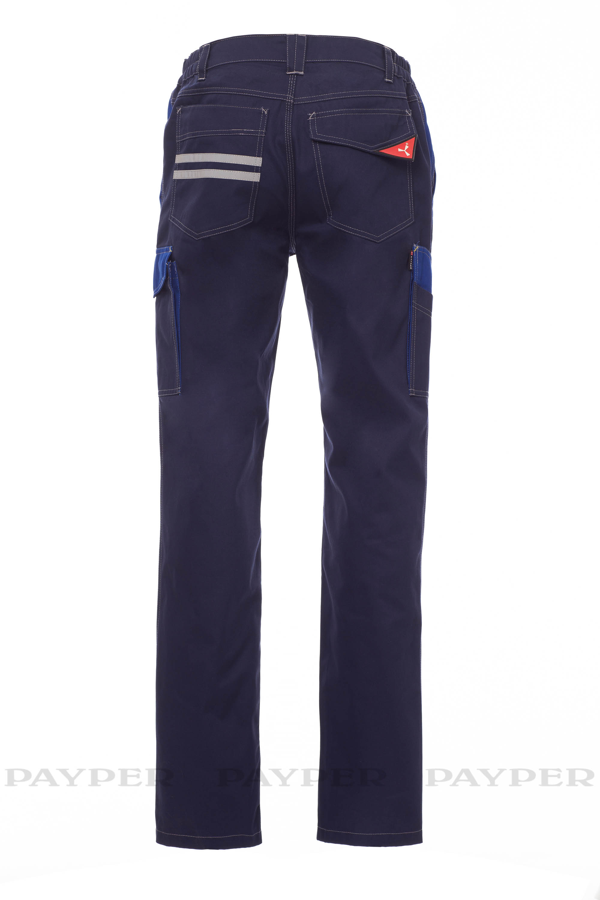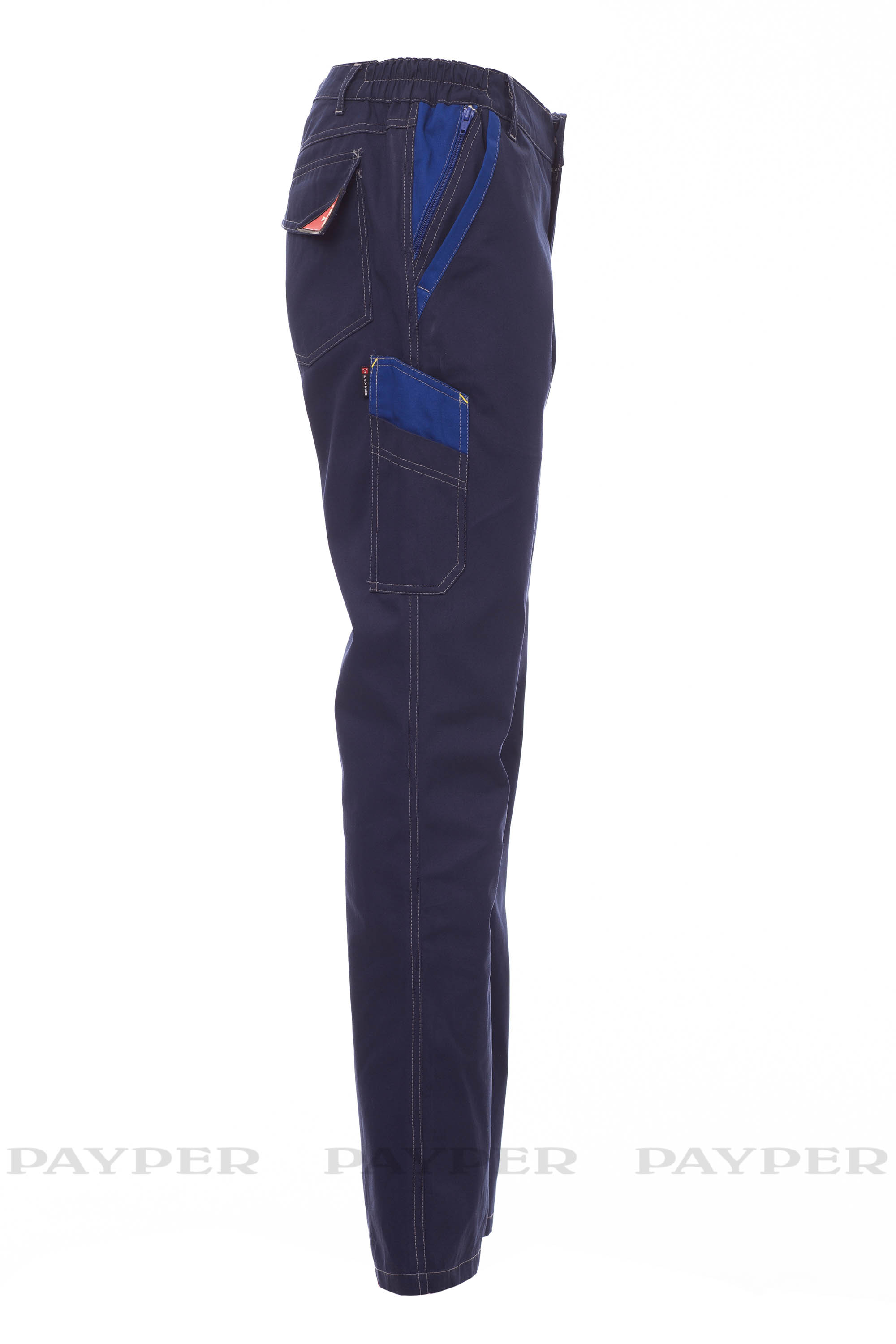 Pantalón unisex para todo el año con lateral elástico y trabillas en la cintura. Cierre con cremallera y botón metálico, dos bolsillos delanteros clásicos y un bolsillo con cremallera, un bolsillo lateral LOCK SYSTEM, un bolsillo para cinta métrica doble en el lateral izquierdo, dos bolsillos traseros, uno abierto y otro con solapa y velcro. Inserciones y pespuntes de contraste, bandas reflectantes en el bolsillo trasero, triple costura en la parte interior de la pernera.