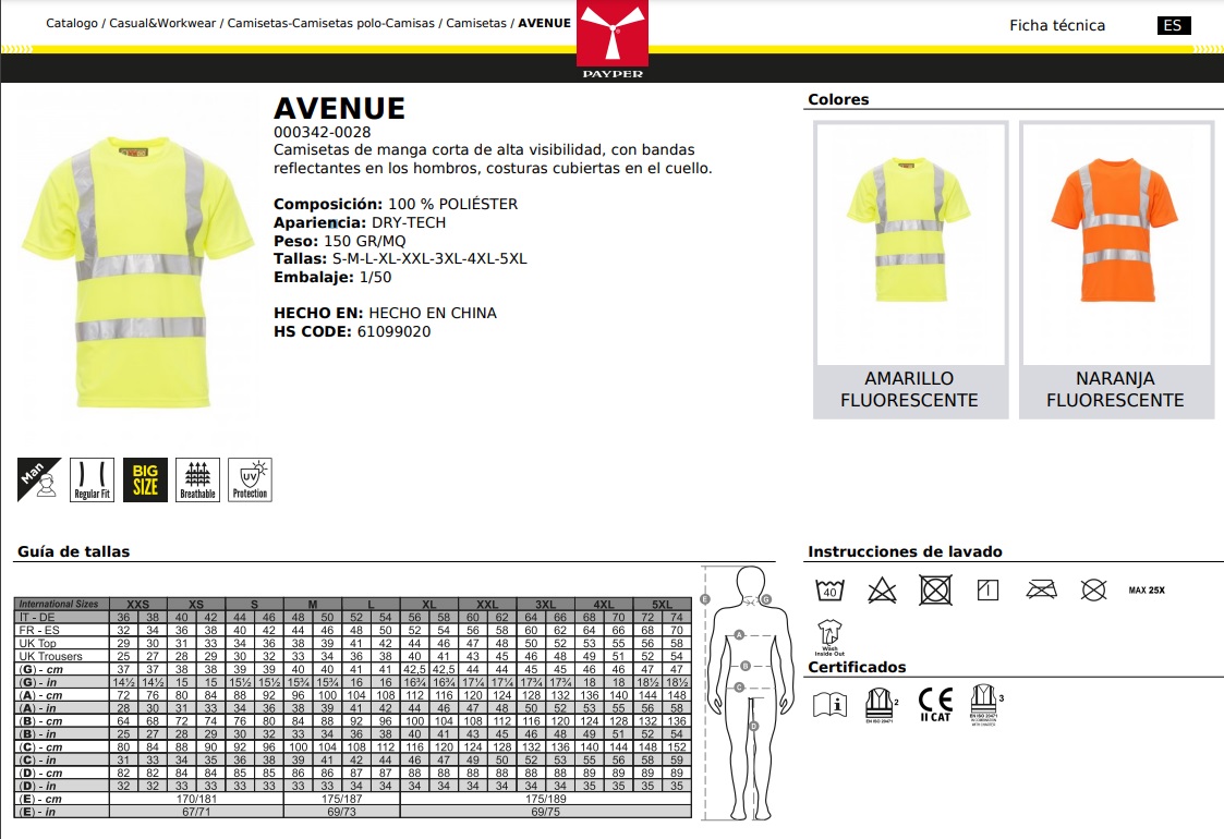 CAMISETA AVENUE · MC · DRY-TECH · AV · CE II CAT - Camisetas M/C - PayPer - Hombre
