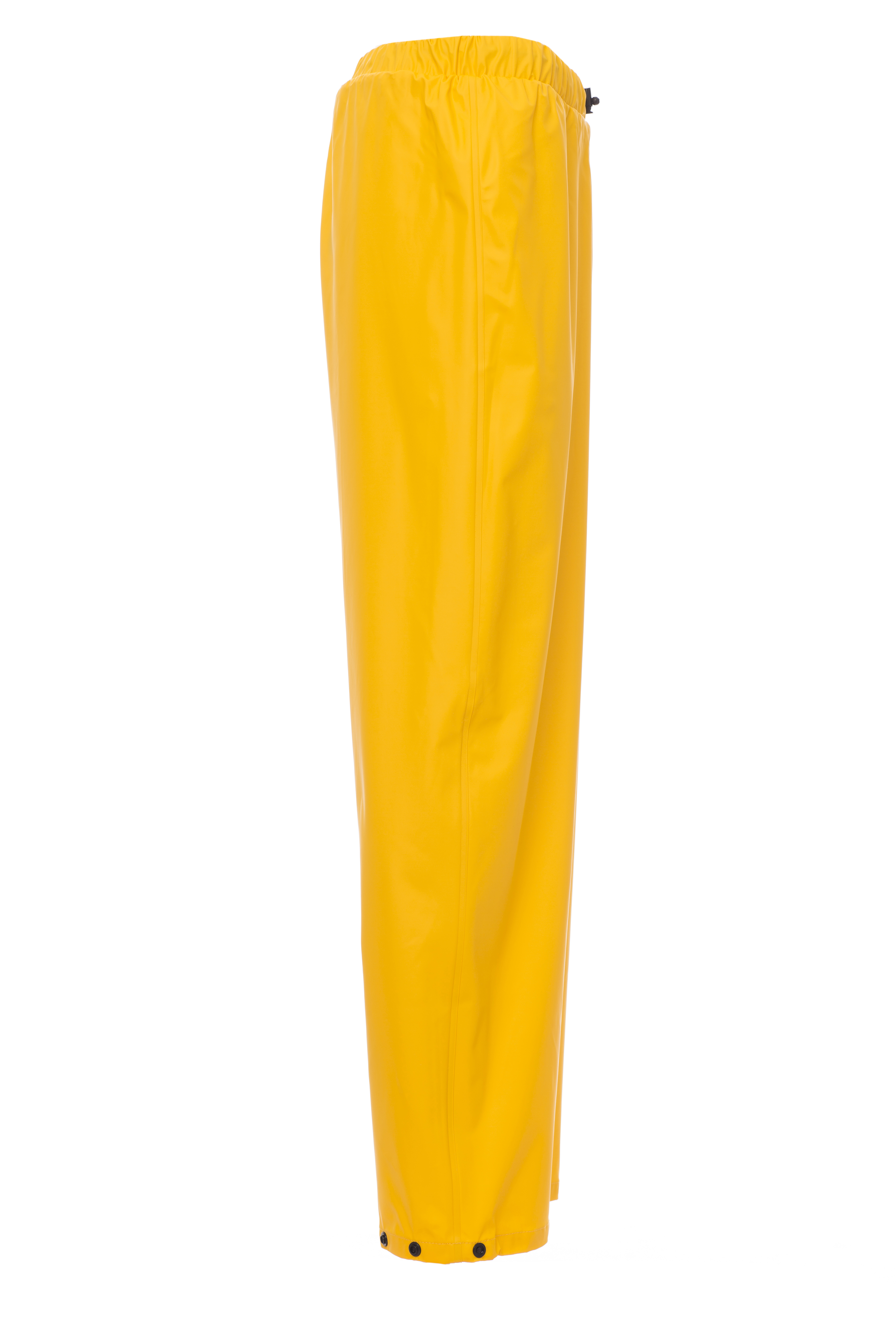 Pantalón para lluvia, cintura elástica con cordón, parte inferior de la pernera ajustable con cierre a presión, costuras estancas.