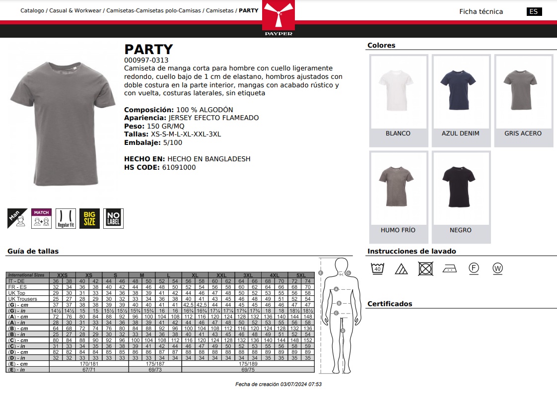 CAMISETA PARTY · MC · EFECTO FLAMEADO · 100% ALGODON