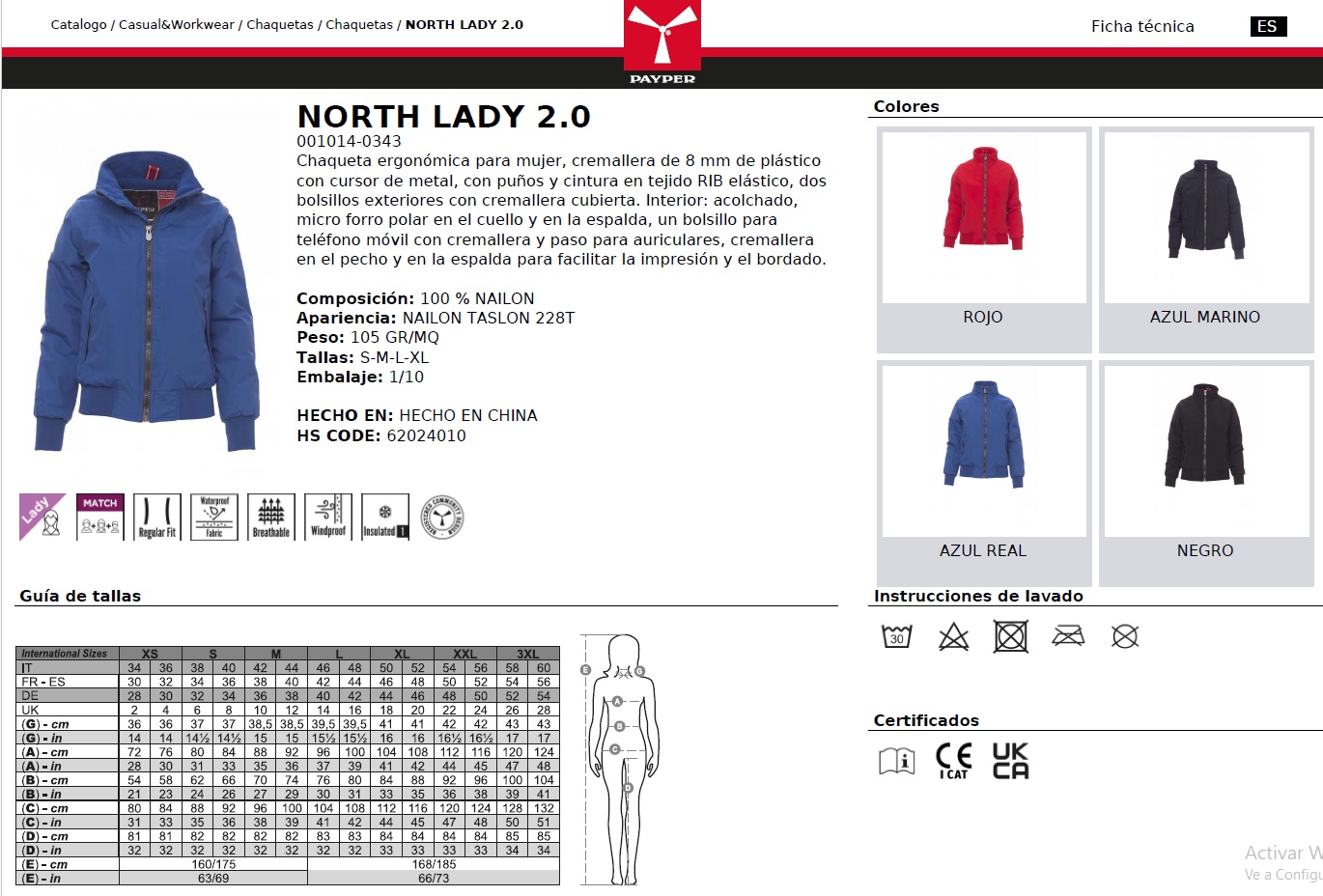 CHAQUETA NORTH LADY 2.0 · WATERPROOF · CORTAVIENTOS · INSULATED 1 · NAILON 100% · CE I CAT - Chaquetas y Parkas - PayPer - Mujer
