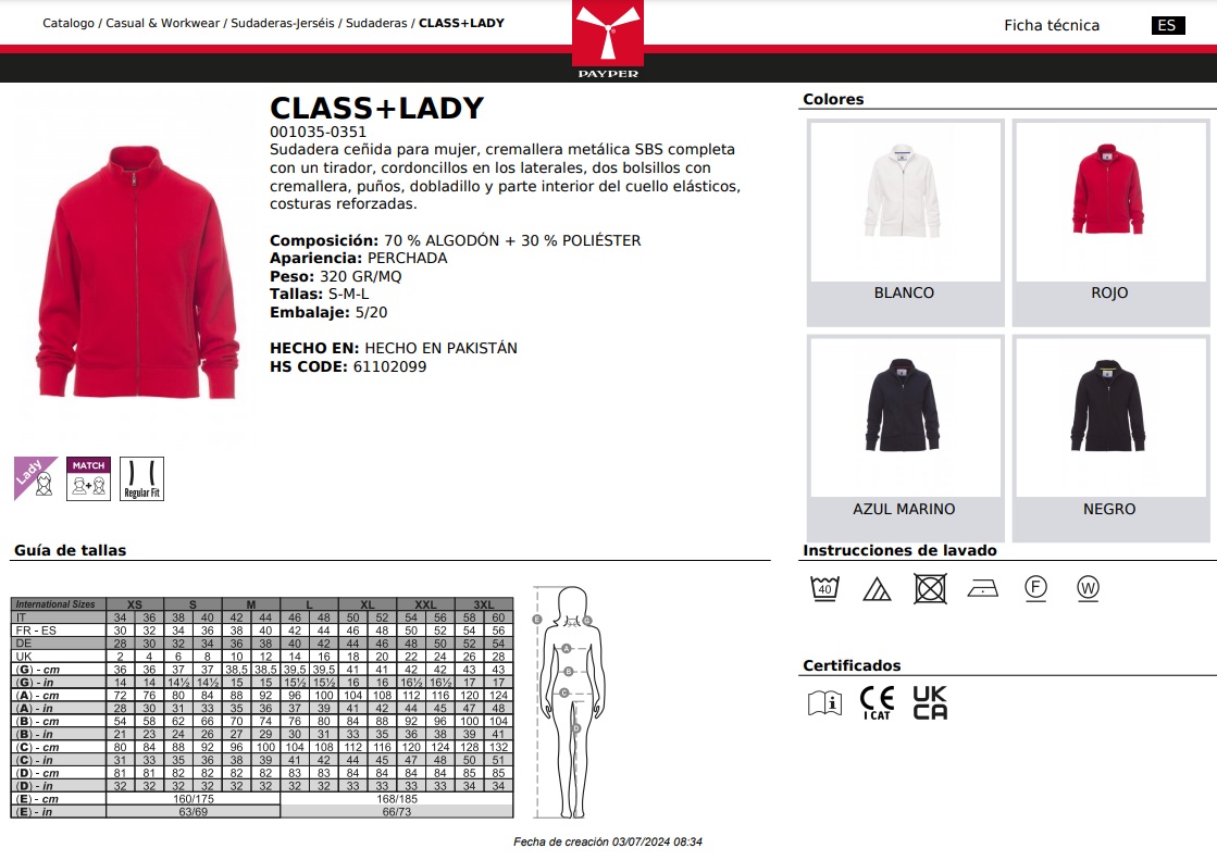 SUDADERA CLASS + LADY · CREMALLERA ENTERA · CE I CAT