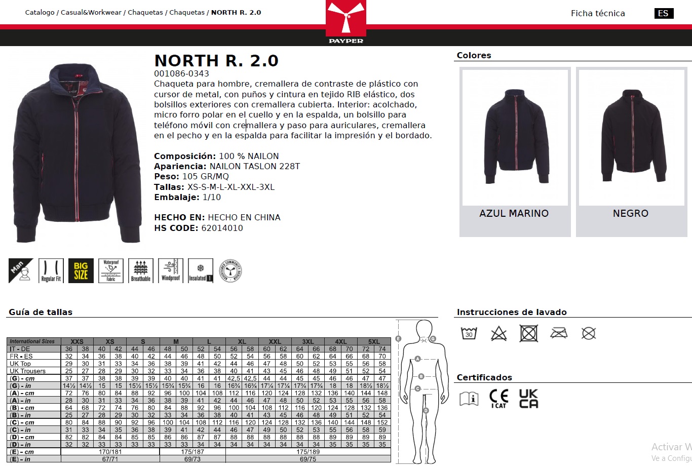 CHAQUETA NORTH R. 2.0 · WATERPROOF · CORTAVIENTOS · INSULATED 1 · CE I CAT - Chaquetas y Parkas - PayPer - Hombre