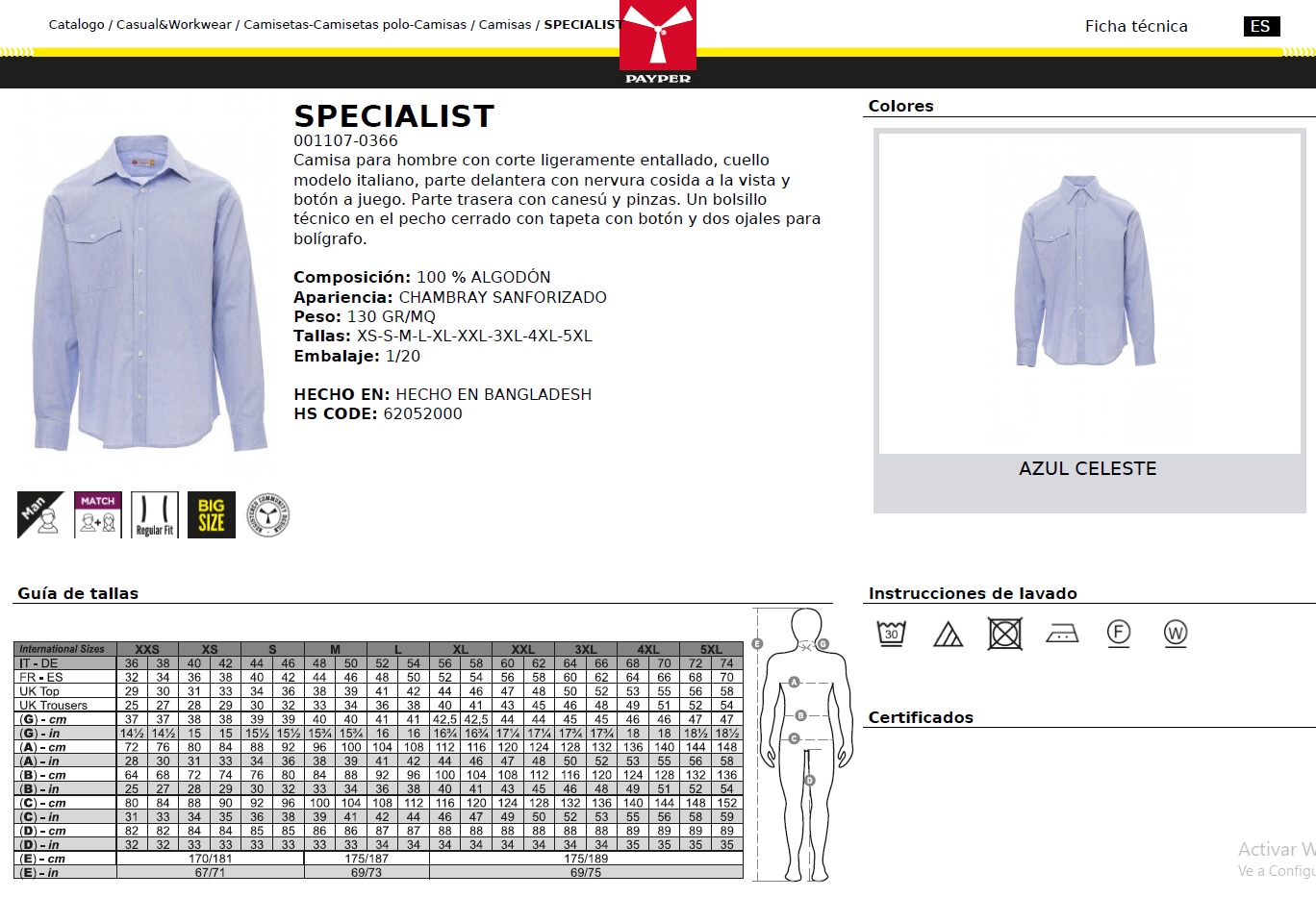 CAMISA SPECIALIST · ML · BOLSILLO · 100% ALGODON