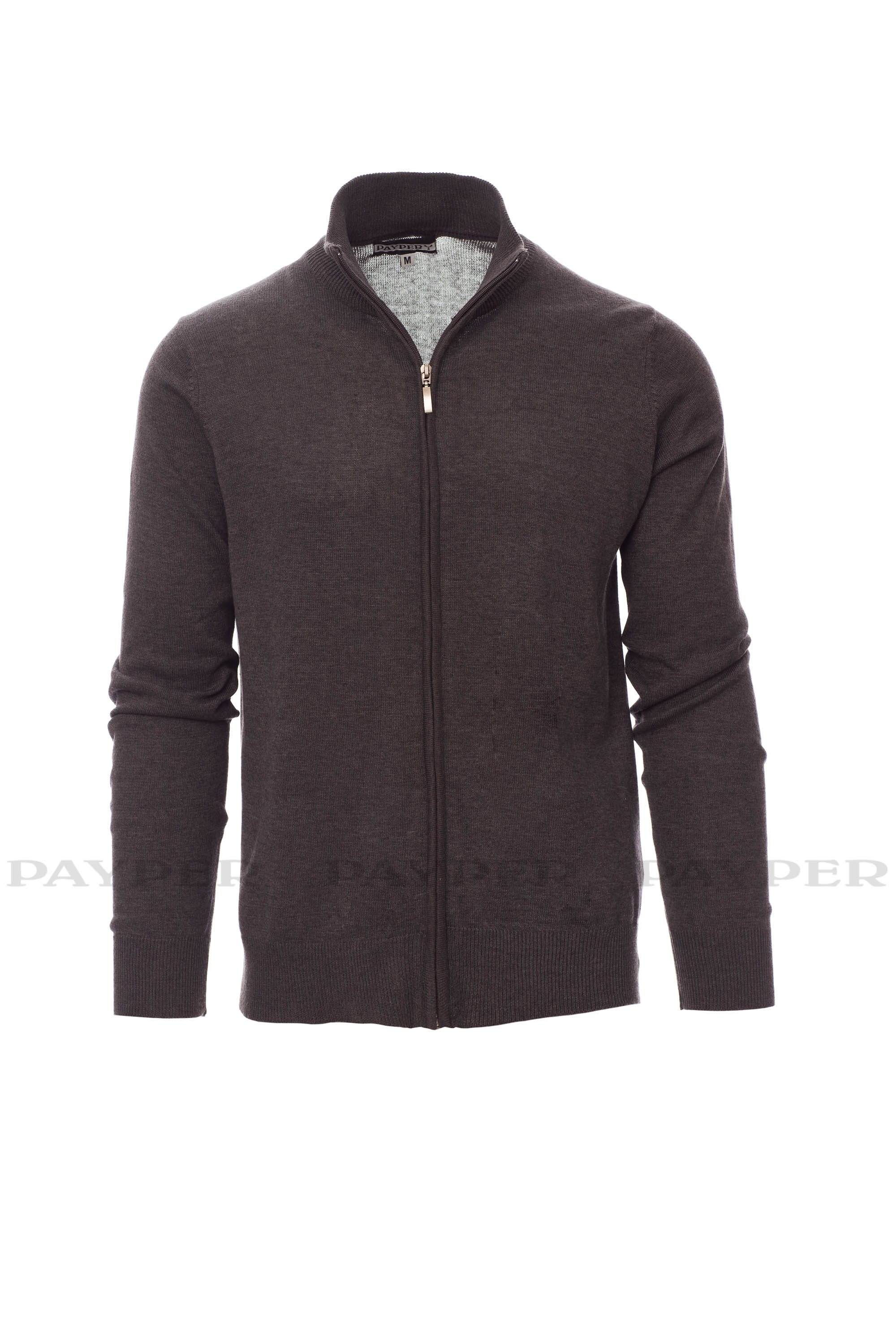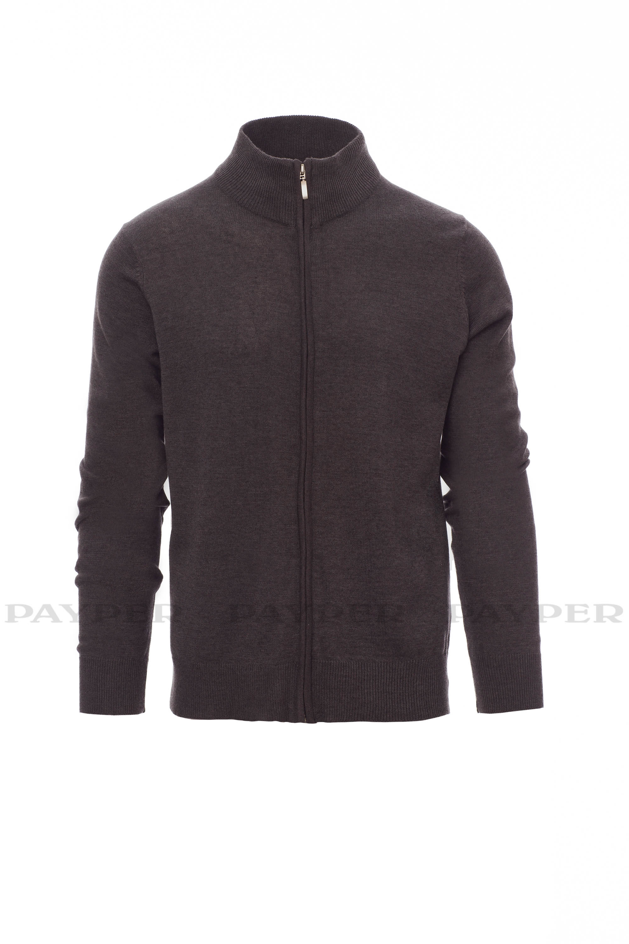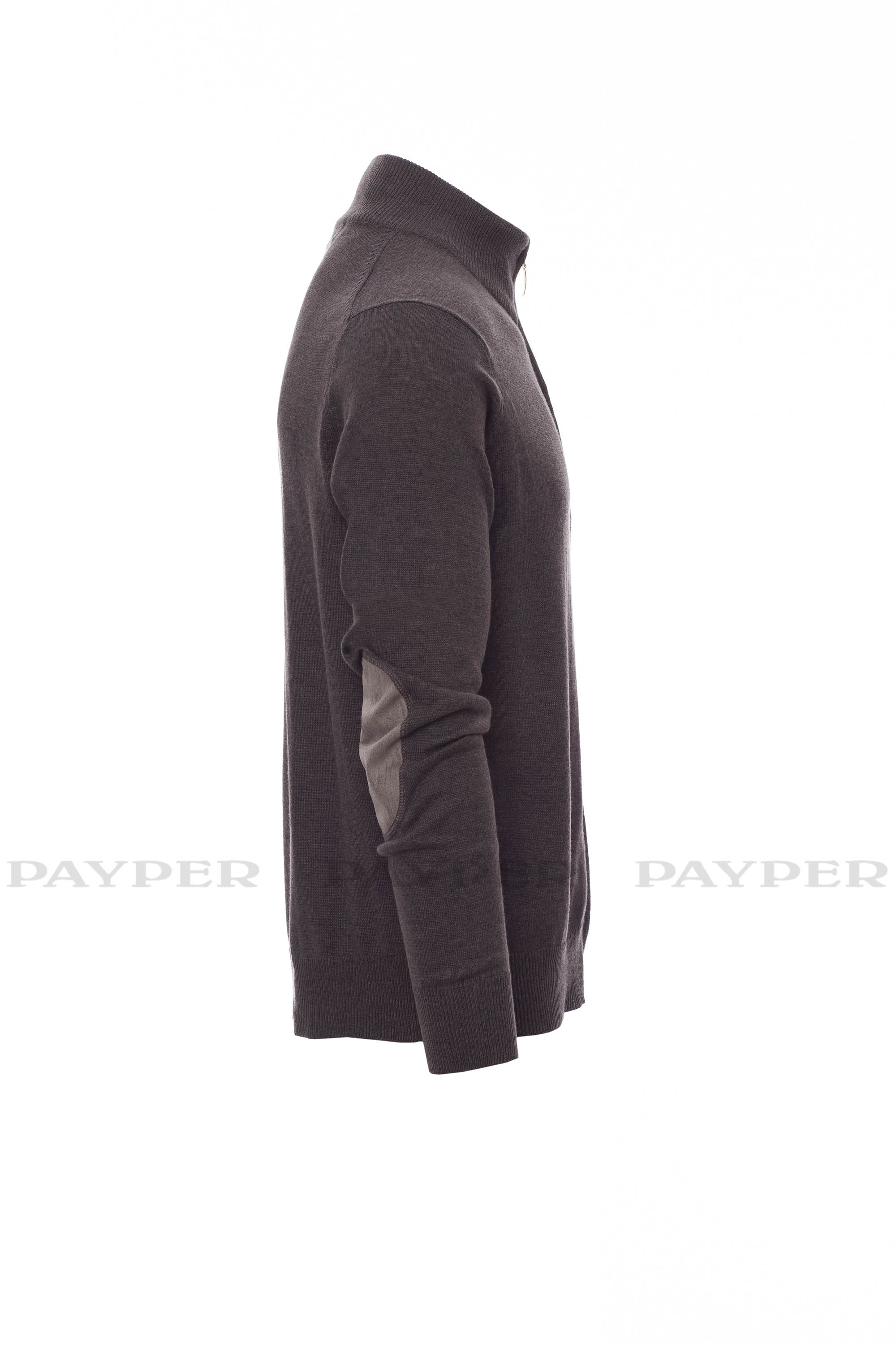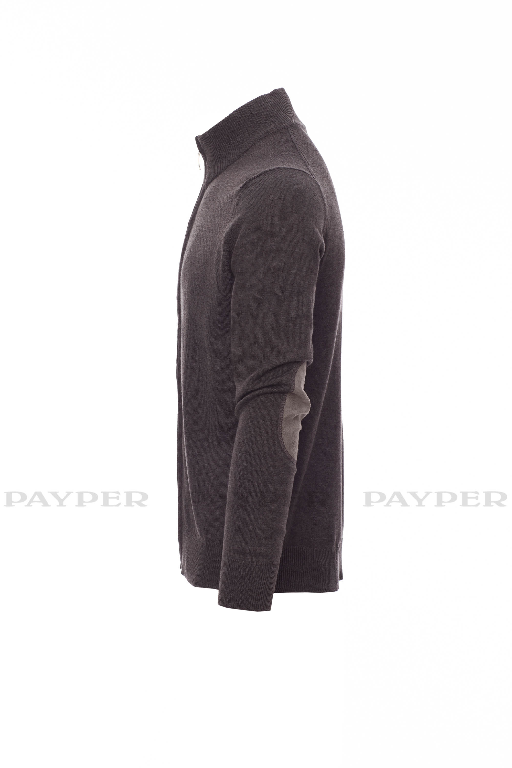 Jersey unisex de cremallera completa, de punto liso fino, confección con tejido de punto menguado sin costuras, cuello, puños y bajo de canalé fino, con coderas.