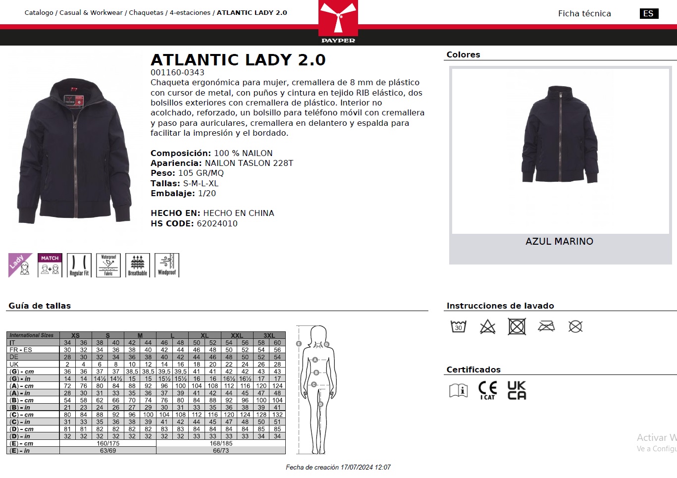 CHAQUETA ATLANTIC LADY 2.0 · WATERPROOF · CORTAVIENTOS · 100% NAILON · CE I CAT - Chaquetas y Parkas - PayPer - Mujer