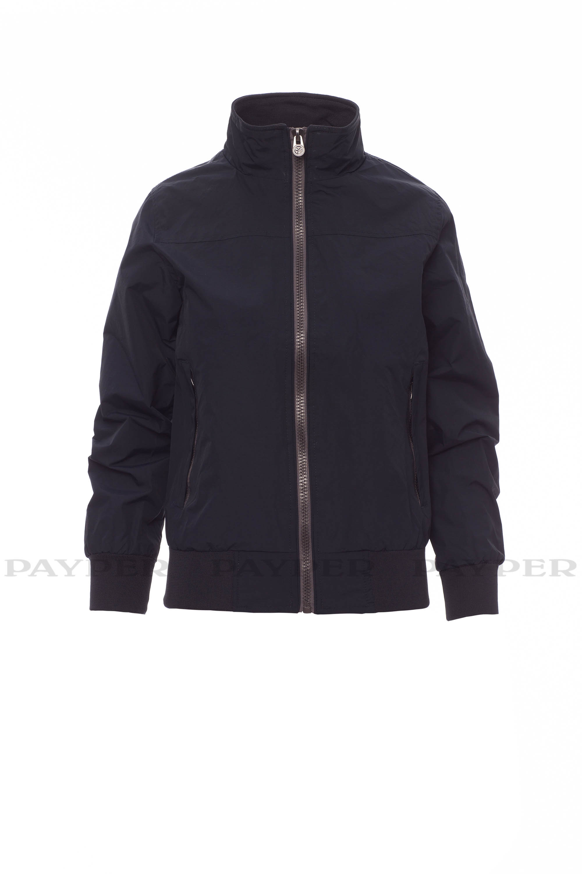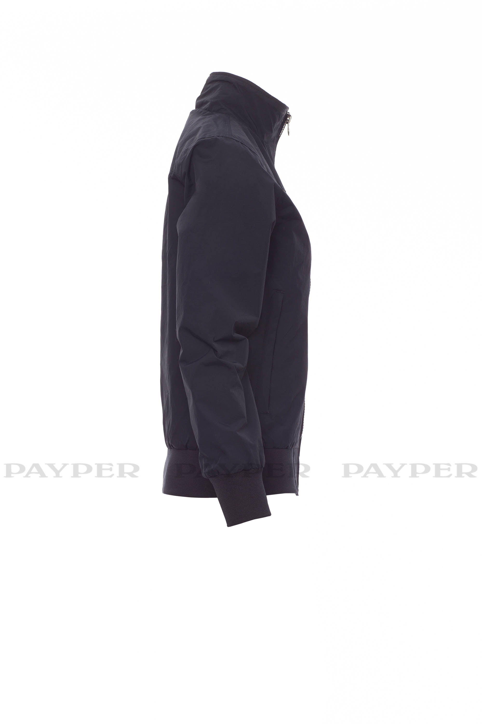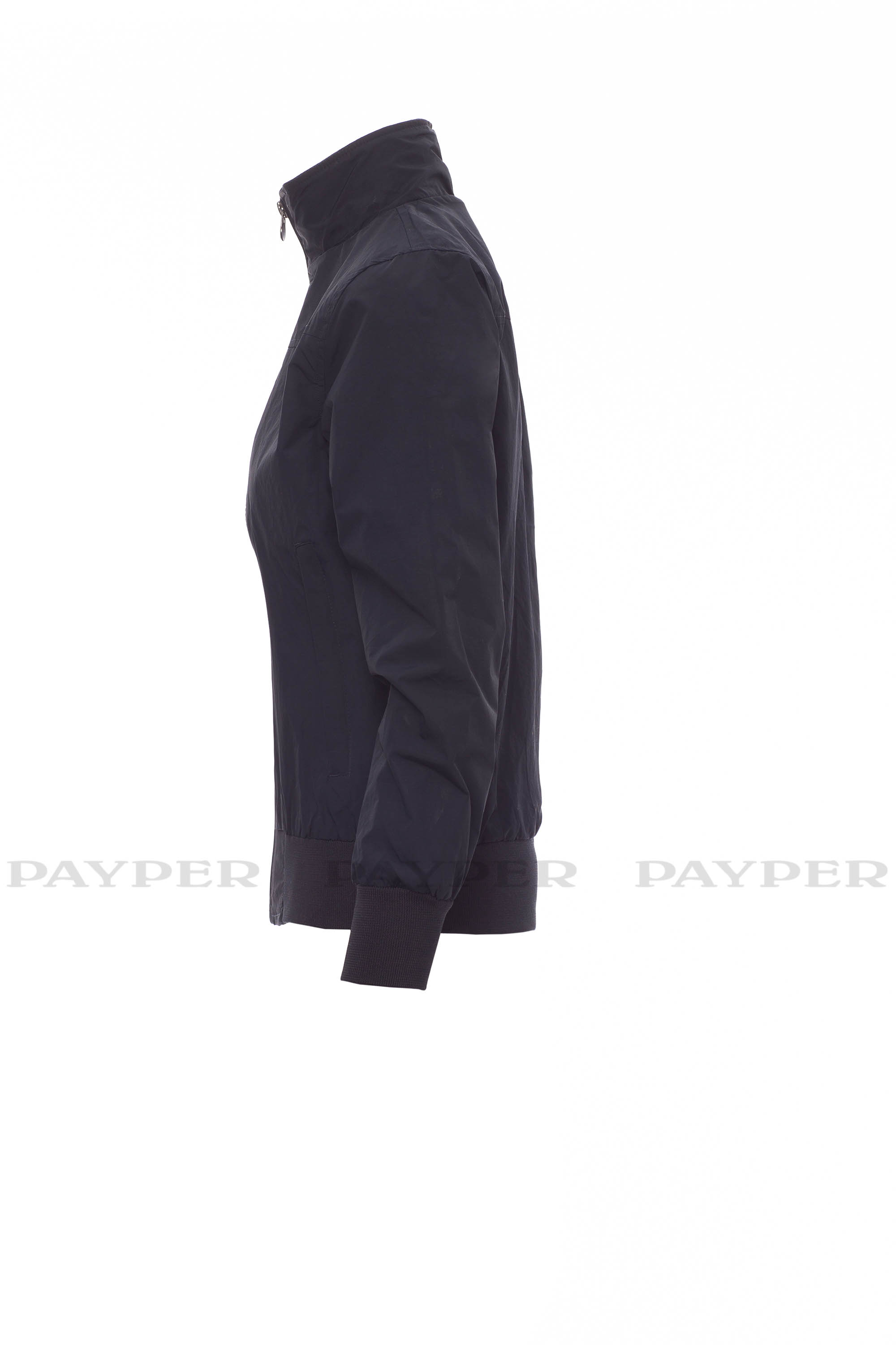 Chaqueta ergonómica para mujer, cremallera de 8 mm de plástico con cursor de metal, con puños y cintura en tejido RIB elástico, dos bolsillos exteriores con cremallera de plástico. Interior no acolchado, reforzado, un bolsillo para teléfono móvil con cremallera y paso para auriculares, cremallera en delantero y espalda para facilitar la impresión y el bordado.
