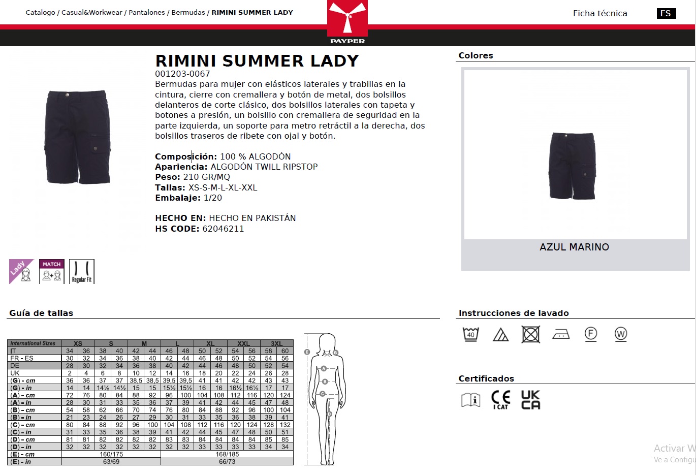 BERMUDA RIMINI SUMMER LADY · MULTIBOLSILLOS · 100% ALGODON · CE I CAT