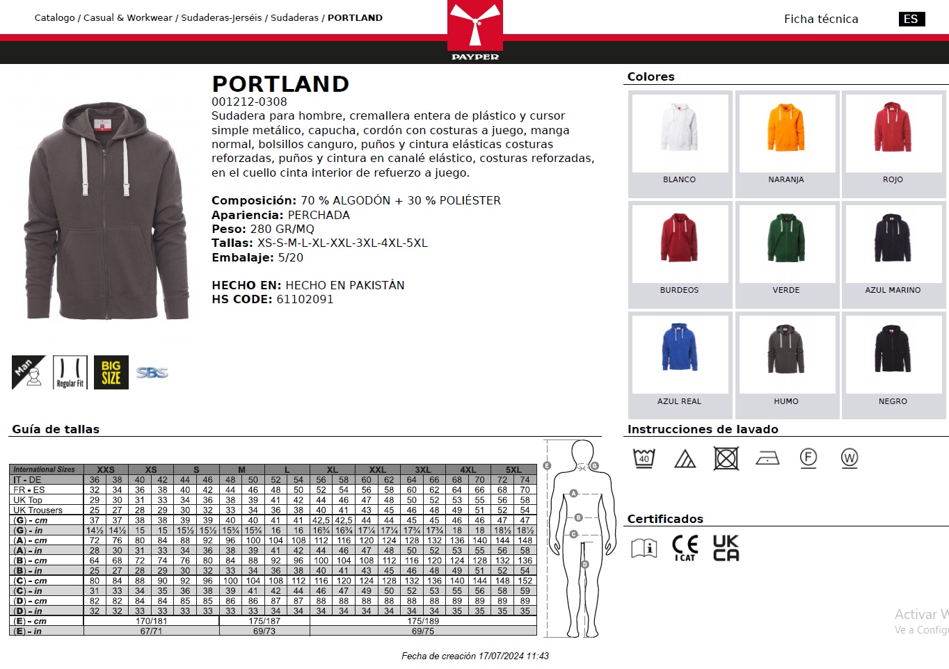 SUDADERA PORTLAND · CREMALLERA ENTERA · CAPUCHA · CE I CAT