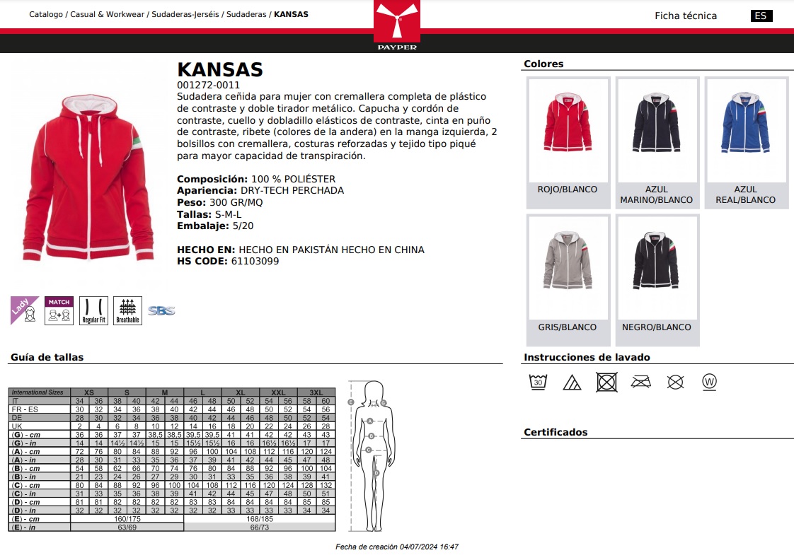 SUDADERA KANSAS · CREMALLERA ENTERA · DRY TECH