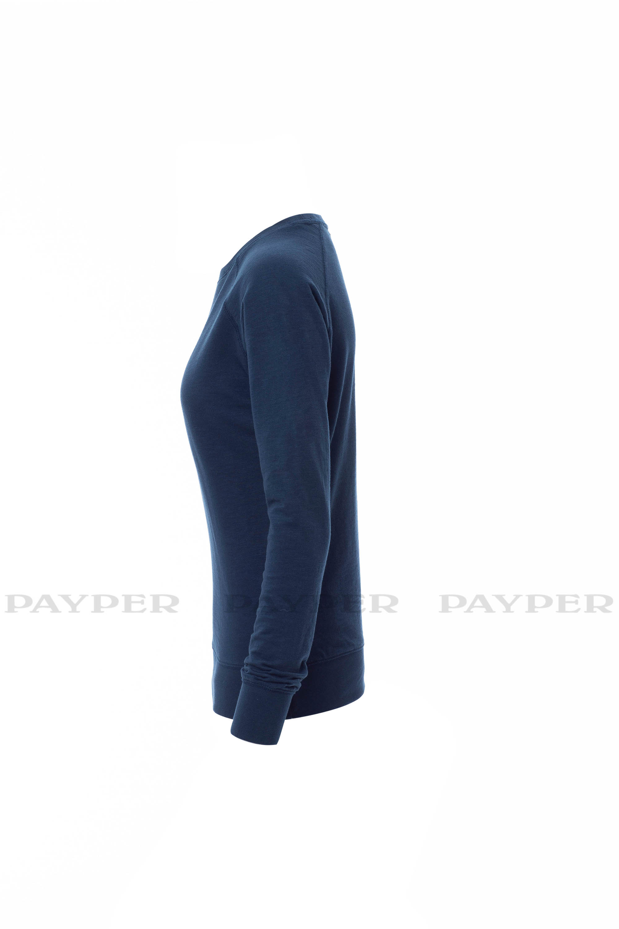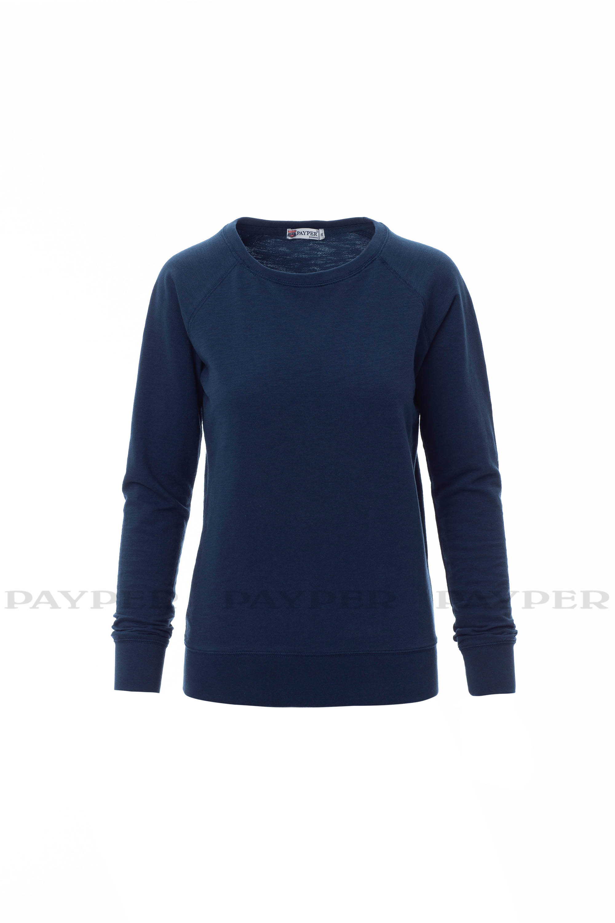 Sudadera para mujer, escote barco de acabado rústico, manga ranglán, puños y cintura en tejido RIB elástico, costuras reforzadas.