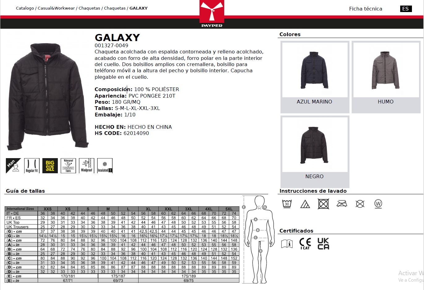 CHAQUETA GALAXY · ACOLCHADO · WATERPROOF · CORTAVIENTOS · INSULATED 1 · CE I CAT - Chaquetas y Parkas - PayPer - Hombre