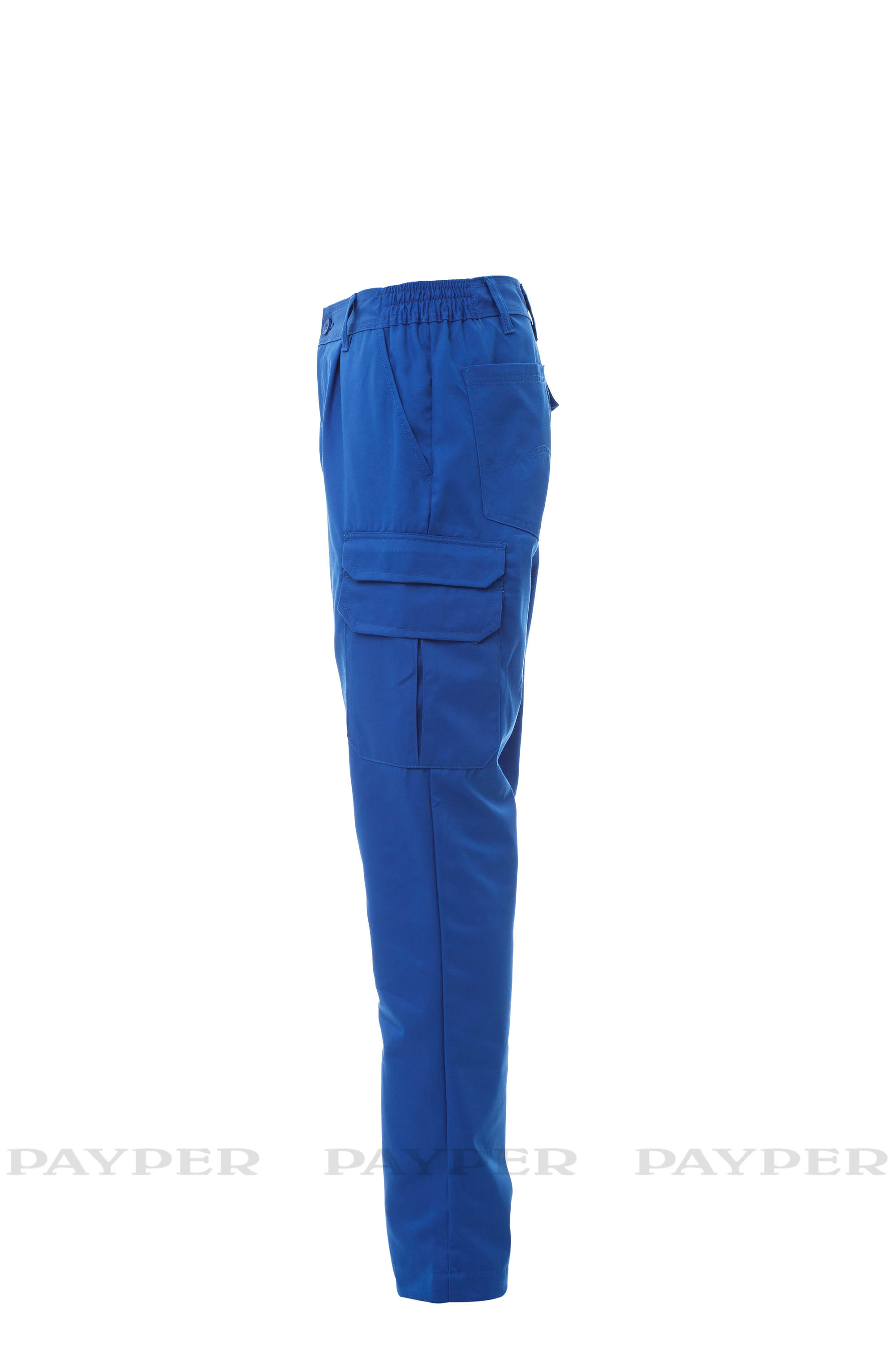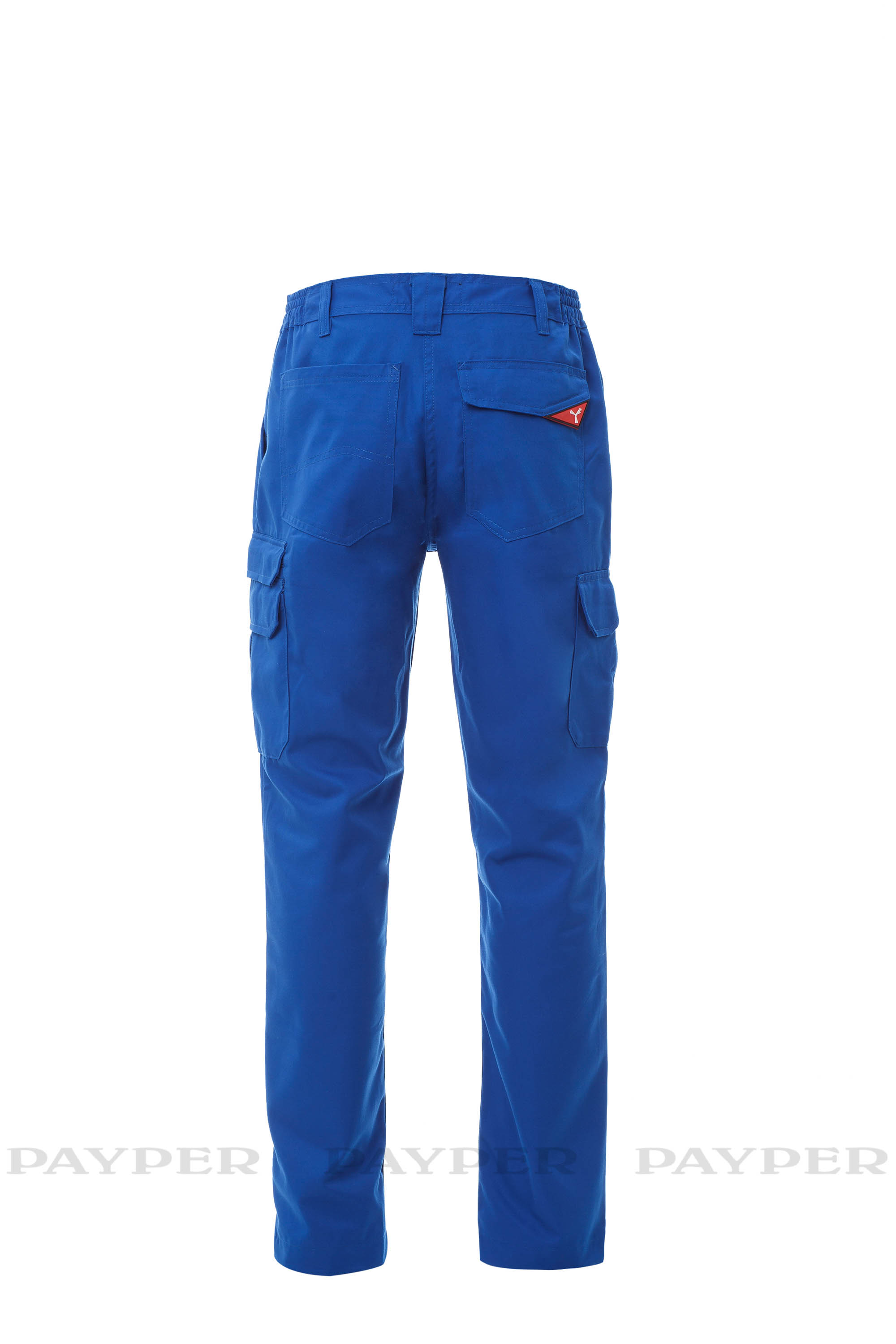 Pantalón multitarea con trabillas y elástico en la cintura, cierre con cremallera y botón. Costuras de la entrepierna e interior de la pierna con triple aguja, dos bolsillos delanteros de corte clásico, bolsillo en el lado izquierdo con tapeta y cremallera de seguridad con tapeta de cubierta, bolsillo en el lado derecho con tapeta dividida en dos para llevar la cinta métrica, dos bolsillos posteriores, uno con tapeta de cierre.
