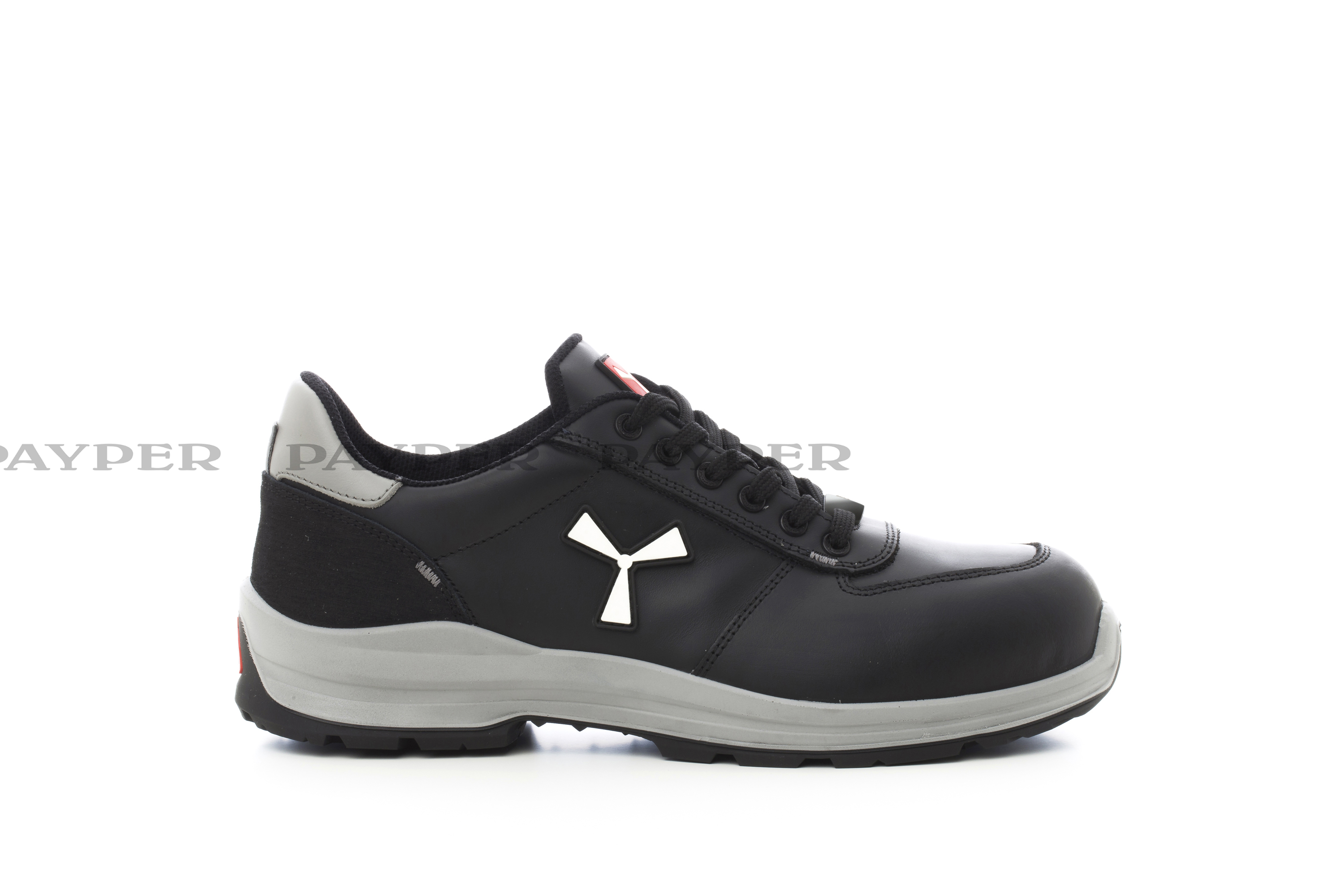 Zapato de seguridad bajo de hombre, pala de piel repelente al agua y transpirable, forro interior (en toda la superficie interna) transpirable y resistente a la abrasión, 6+6 ojales sin metal, protector de tacón en grano técnico con inserción repelente al agua, puntera de aluminio moldeado a presión, plantilla extraíble Ortholite X40 016, plantilla de lámina textil certificada antiperforación, cambrillón antitorsión, base de la puntera con forma de herradura, entresuela de poliuretano ultraligero, amortiguador MASTER BALANCE en PU poliéter de alta tenacidad y densidad equilibrada, suela XTRAIL GRIP en TPU con protector de tacón y de punta.