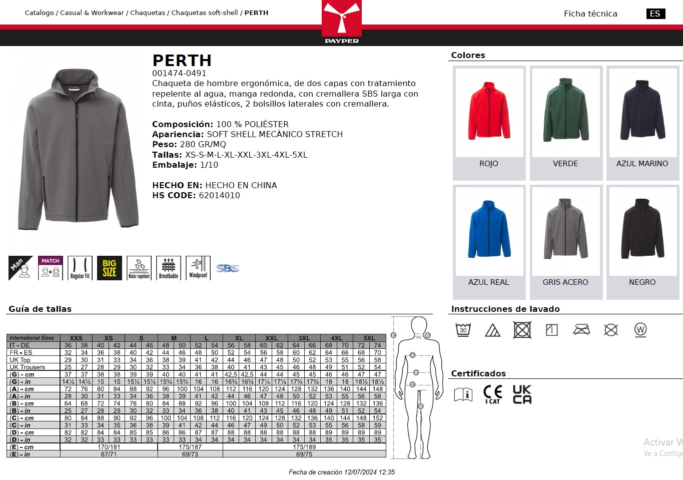 SOFTSHELL PERTH · HIDROFUGADO · CORTAVIENTOS · 2 CAPAS · CE I CAT