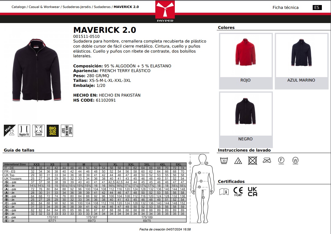SUDADERA MAVERICK 2.0 · CREMALLERA ENTERA · ELASTICO/STRETCH · CE I CAT