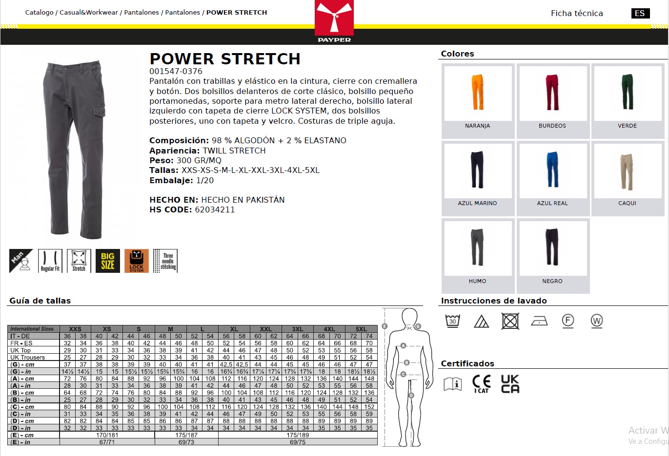 PANTALON POWER STRETCH · MULTIBOLSILLOS · ELASTICO/STRETCH · TRIPLE COSTURA · CE I CAT