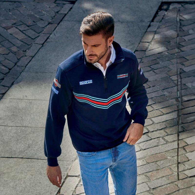 Sudadera de media cremallera inspirada en el icónico mono Sparco - Martini Racing. Logotipos Bordados.