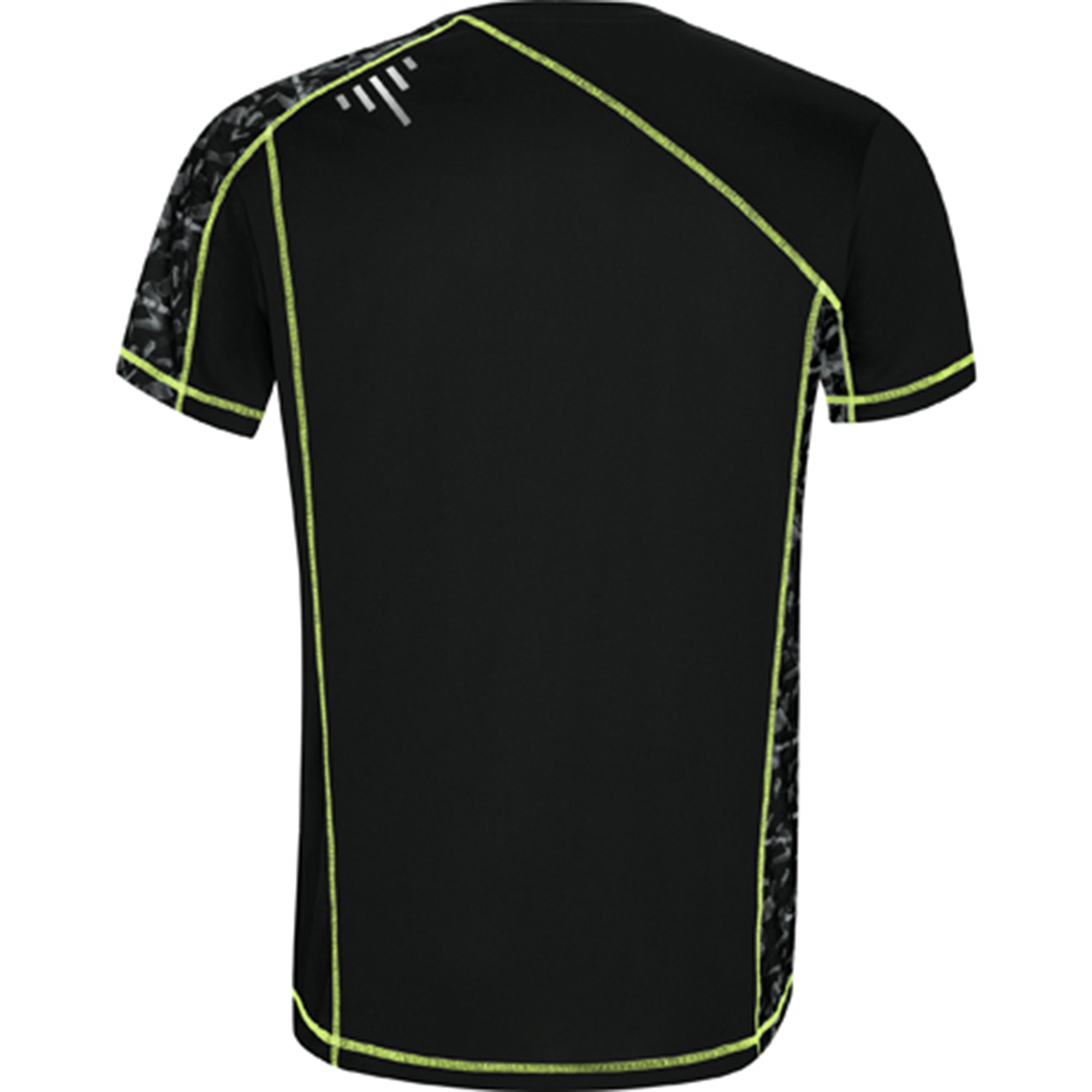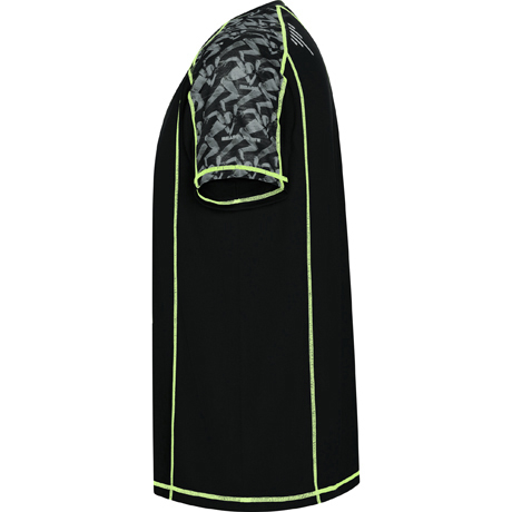 Camiseta técnica de manga raglán con paneles sublimados. Poliéster Reciclado CONTROL DRY. Remallado en flúor (excepto color blanco). Detalles reflectantes y faldón trasero. Etiqueta identificativa logo ECO en manga.