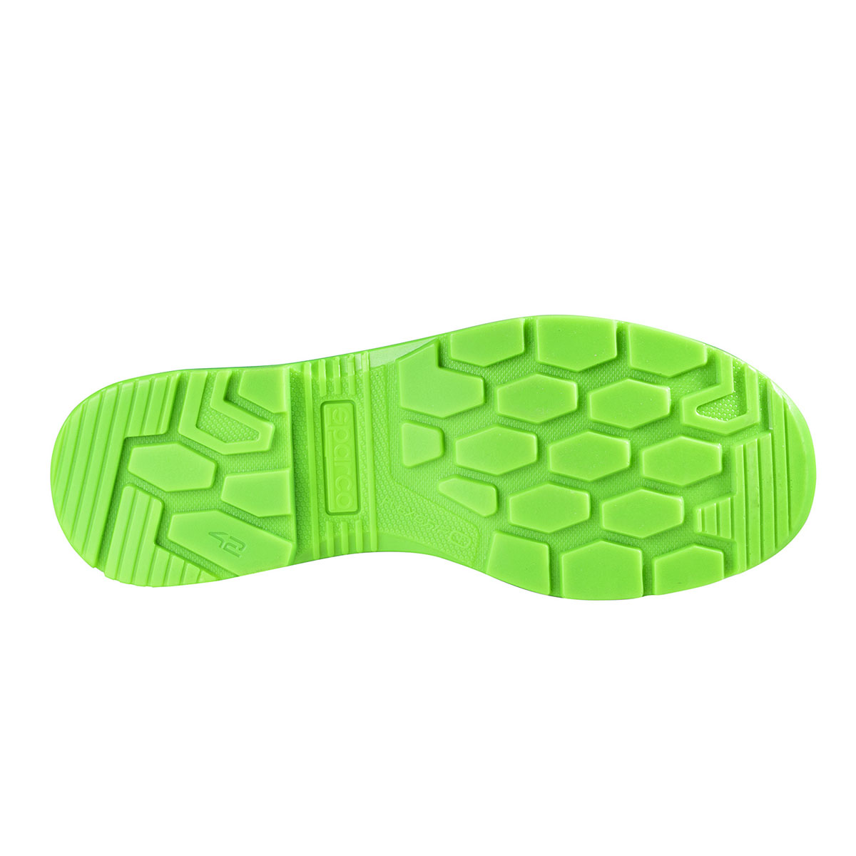 Fabricado en tejido técnico anti abrasión regenerado SPARCO FULL EFFICIENCY y refuerzos hf en la puntera. Con suela en poliuretano bi-densidad "Flexgrip+" de Sparco con diseño especial en la zona del tacón conforme a los requisitos para trabajos en escalera con peldaños (siglas LG - Ladder Grip).