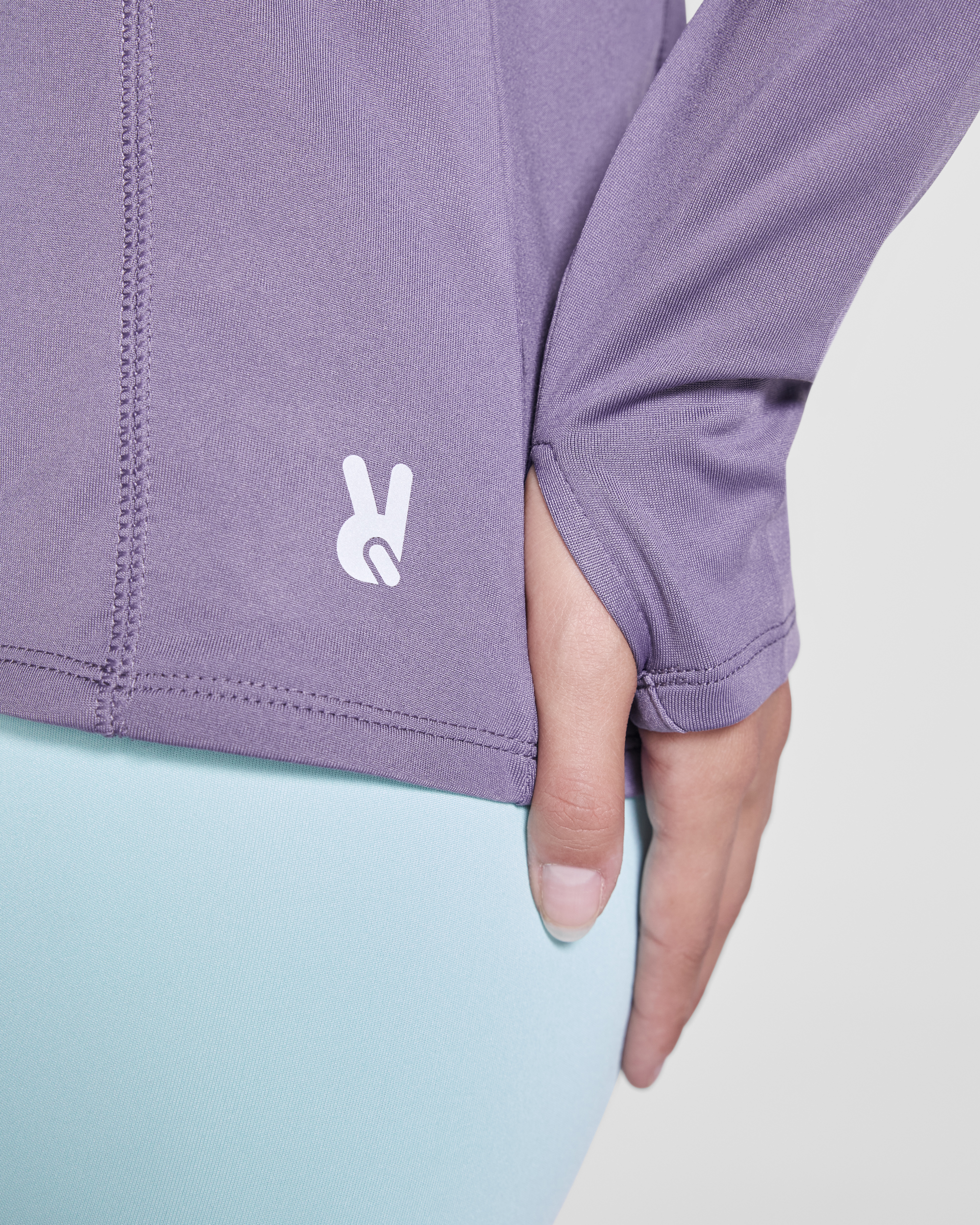 Sudadera técnica de manga larga ranglán para mujer. Interior perchado. Cubrecosturas reforzado en cuello. Media cremallera invertida a tono. Ojales en los puños para el pulgar. Costuras overlock en manga ranglán y paneles laterales. Logo Roly reflectante en panel lateral izquierdo.