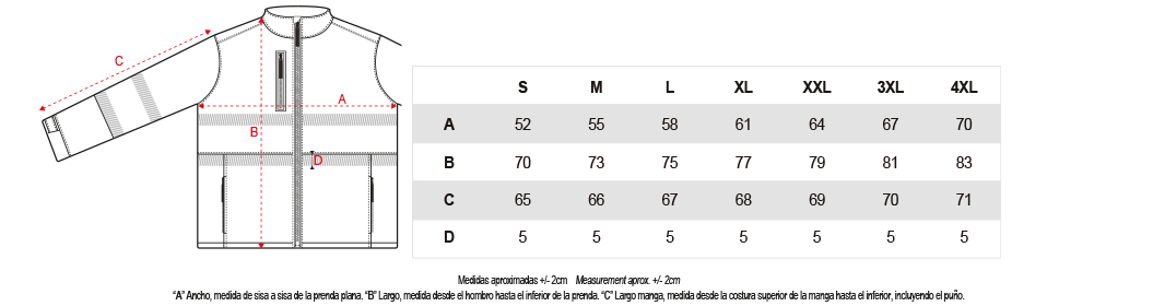 2 bandas reflectantes segmentadas termoselladas en torso y mangas