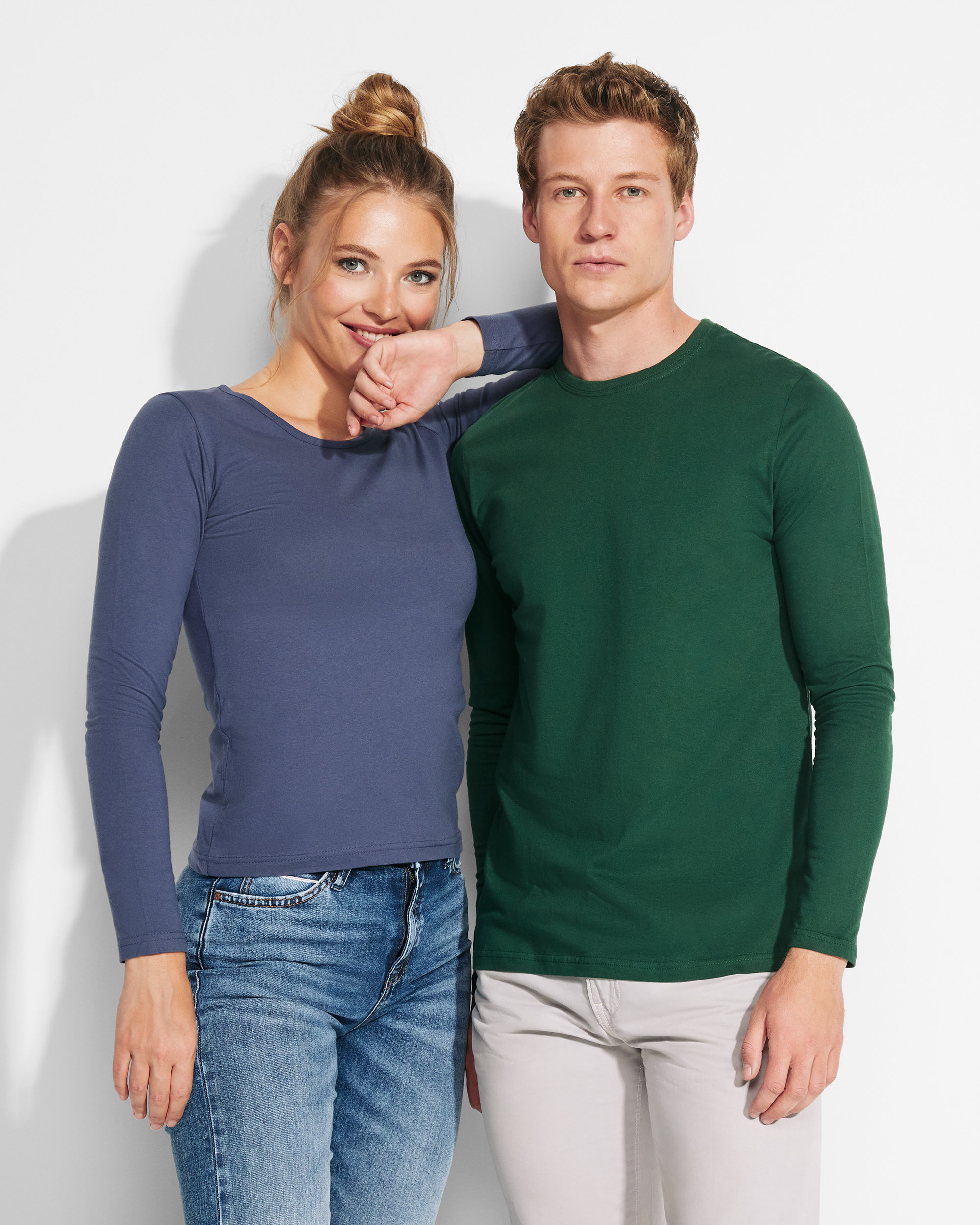 Camiseta semientallada, de manga larga y cuello acabado con ribete fino. Sin puños. Costuras laterales.