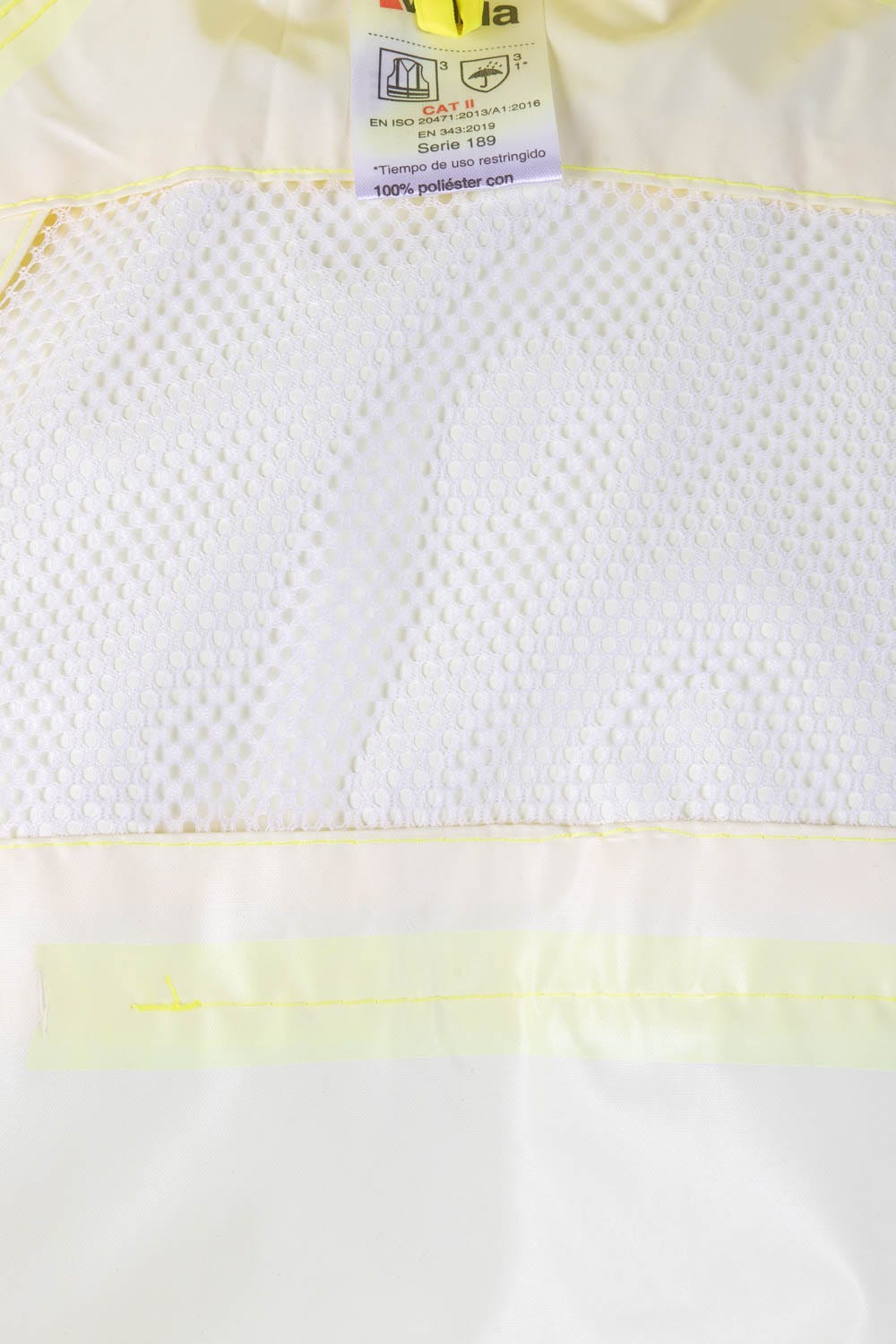 Rejilla interna en la espalda y ojal metálico en las axilas, para favorecer la transpirabilidad