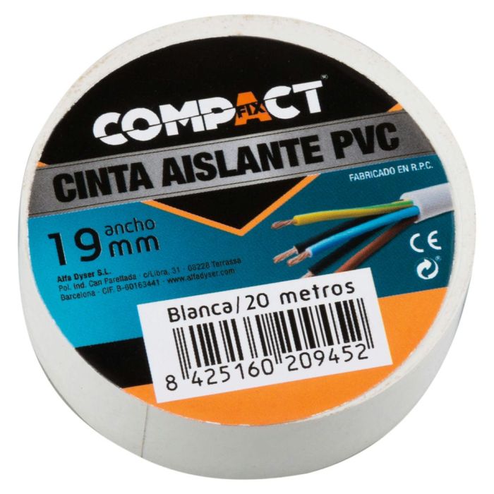 20947-CINTA AISLANTE COMPACT BLANCA 19MM x 20M | Pack 10 Rollos - Cintas y Burletes - Compact - N/A
