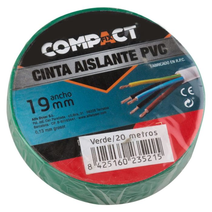 23521-CINTA AISLANTE COMPACT VERDE 19MM x 20M | Pack 10 Rollos
