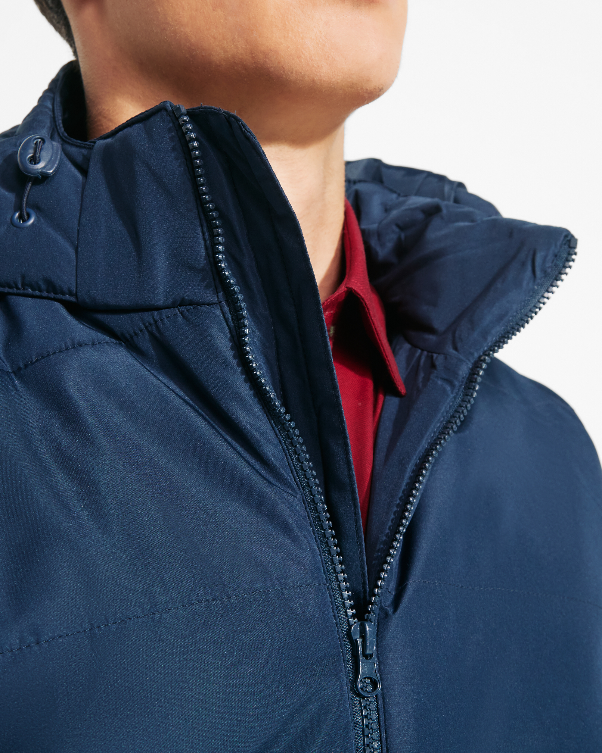 ·Cremallera central a tono con protector de barbilla.