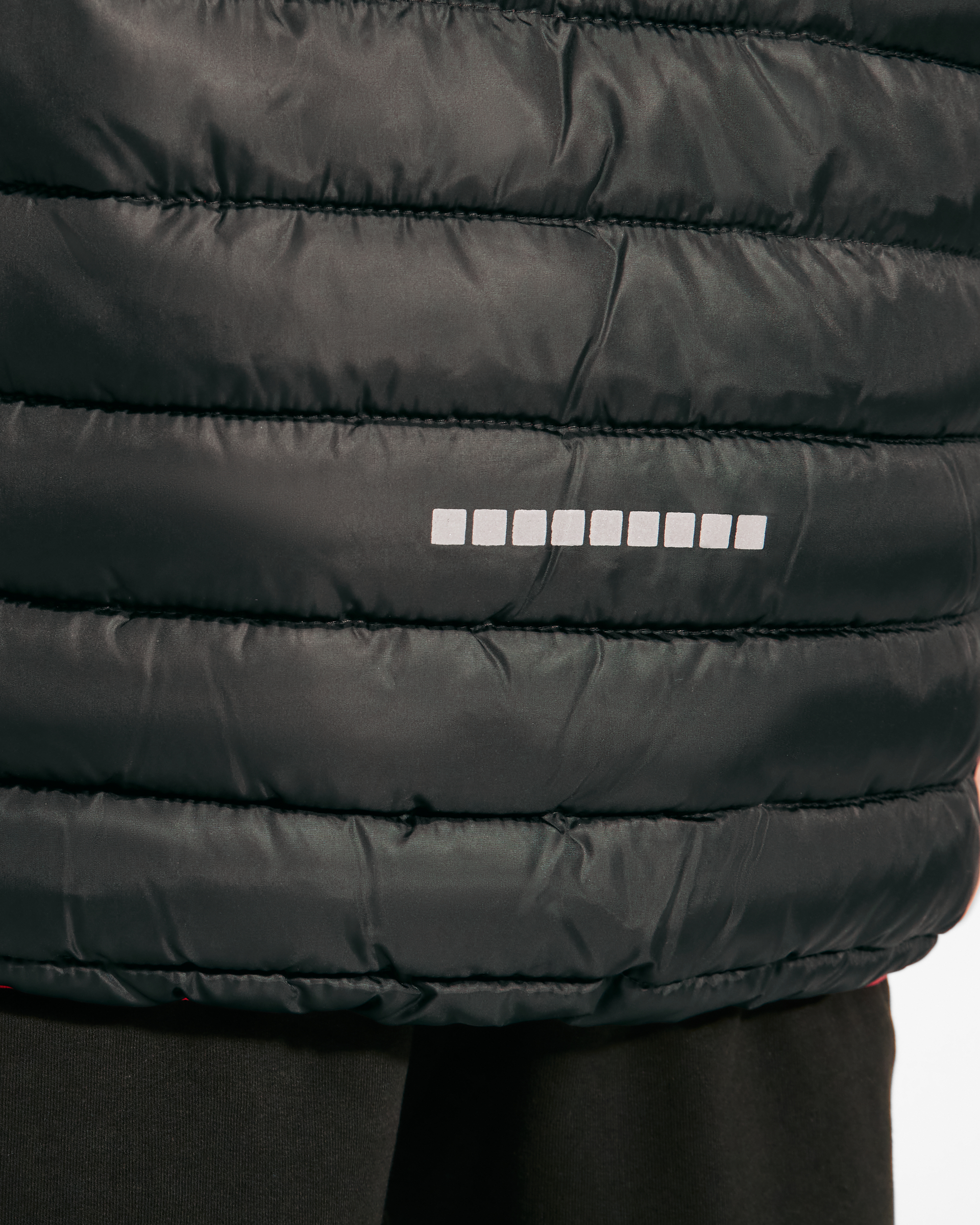 ·Cremallera frontal invertida a contraste con protector de barbilla y tirador.