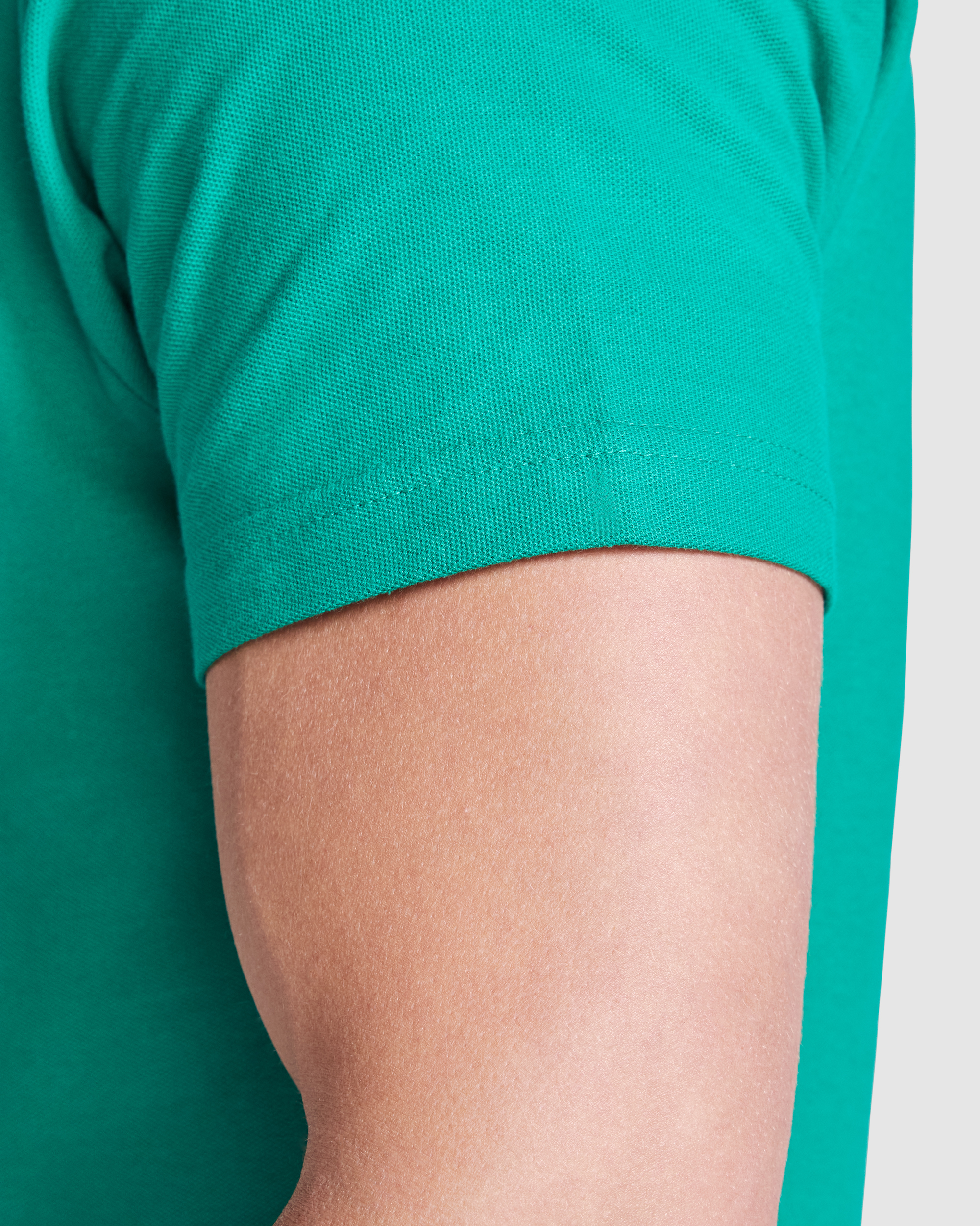 Polo de manga corta, con cuello acanalado y tapeta de 3 botones. Cubrecosturas reforzado en cuello.