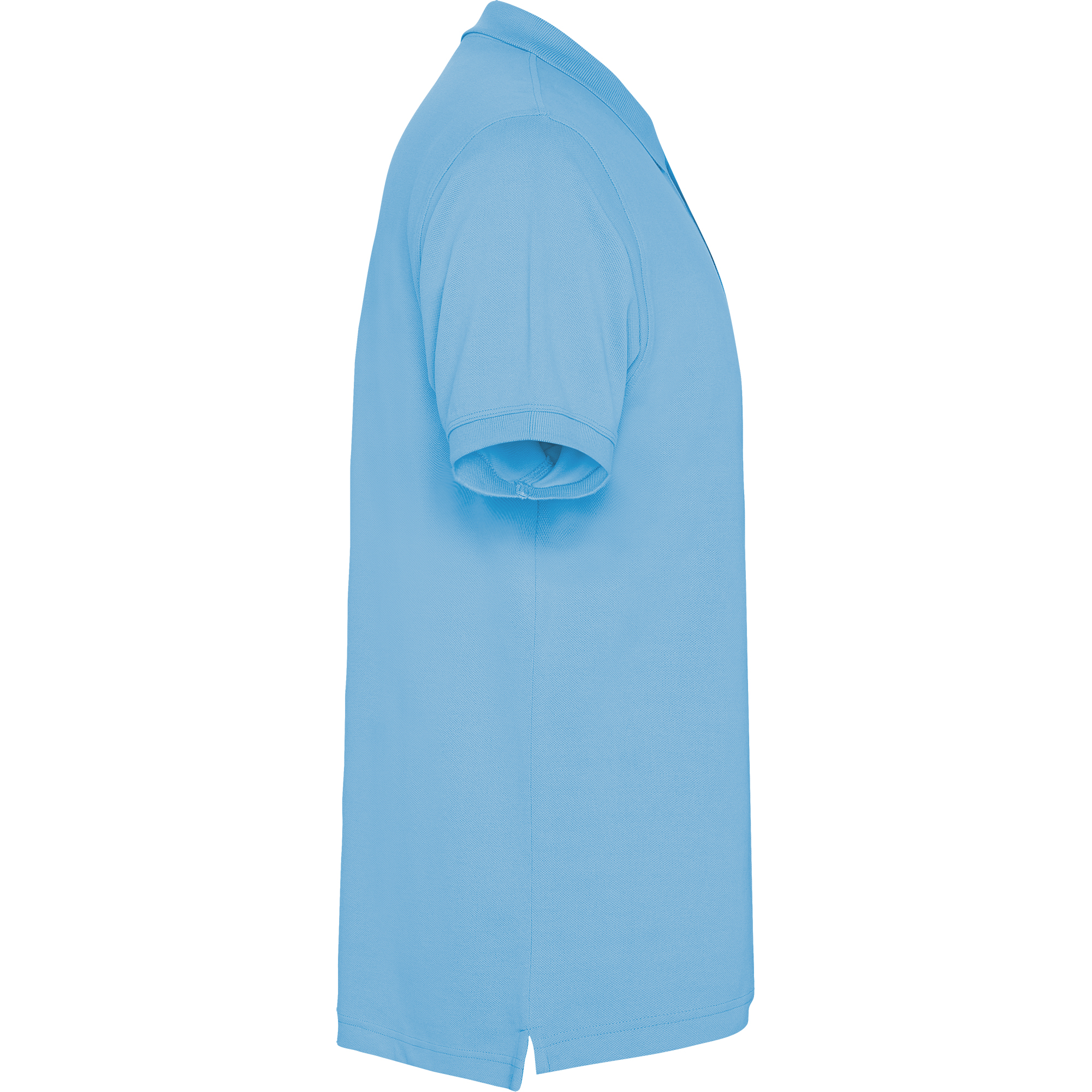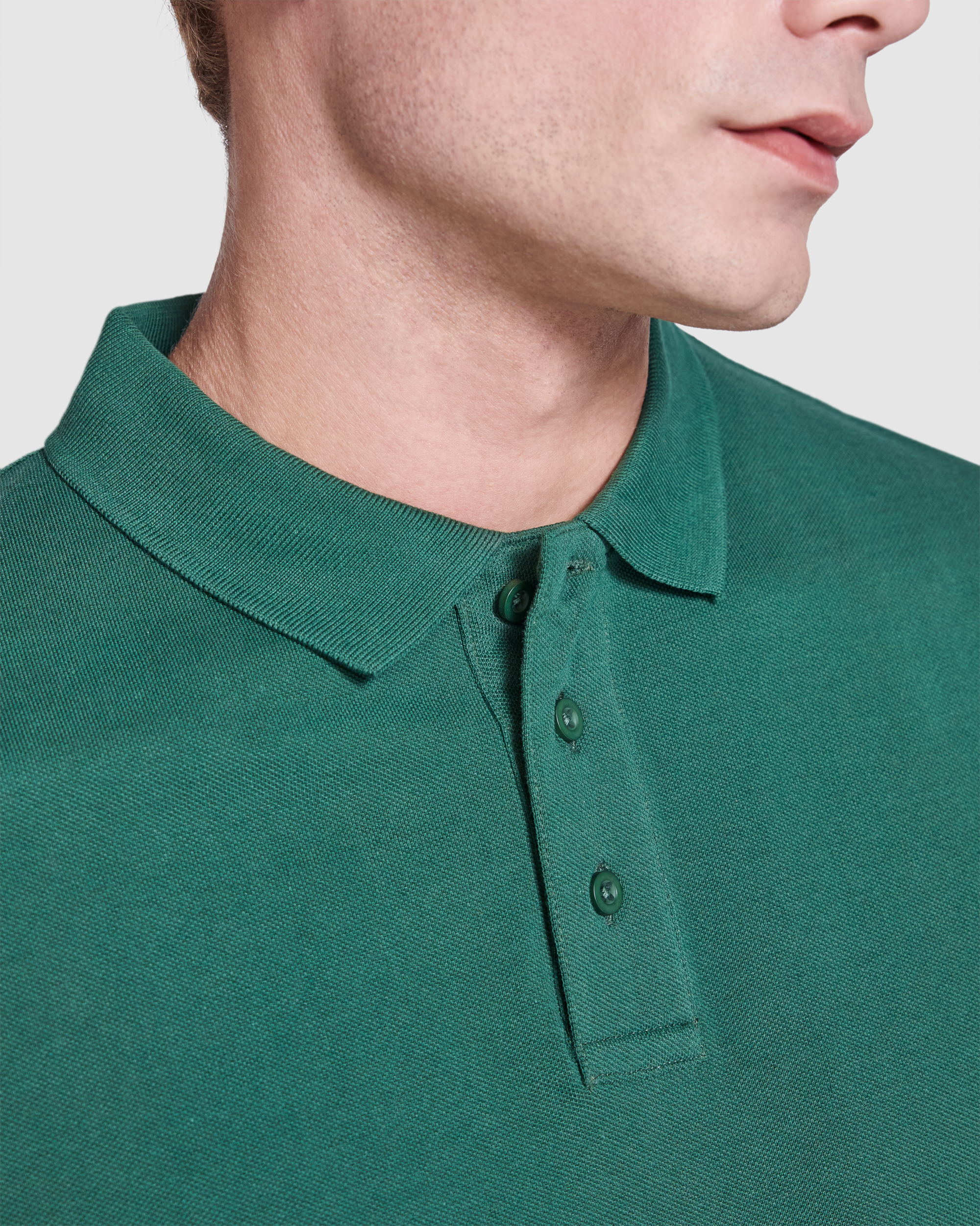 Polo de hombre con manga corta de alta calidad, en tejido confortable. Cuello con tapeta de tres botones a tono con el tejido. Solapa y ribete de la manga acanalado. Cubrecostura de refuerzo en el interior del cuello. Aperturas laterales con cubrecosturas a tono. El patronaje de la espalda es ligeramente más largo que el delantero. Doble costura en hombros, mangas y bajo de la prenda.