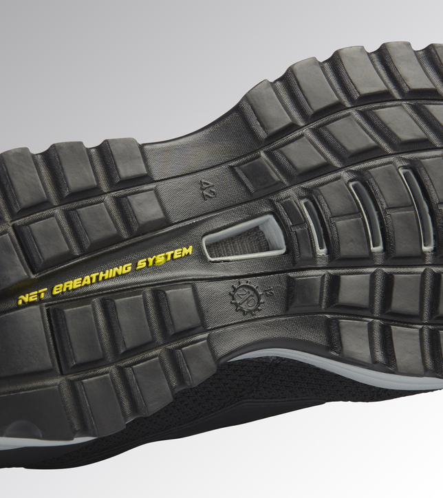 Calzado bajo de seguridad S1P de piel Perwanger antiarañazos, hidrófugo y transpirable en tejido de rejilla con sistema de transpiración Net Breathing System by Geox.