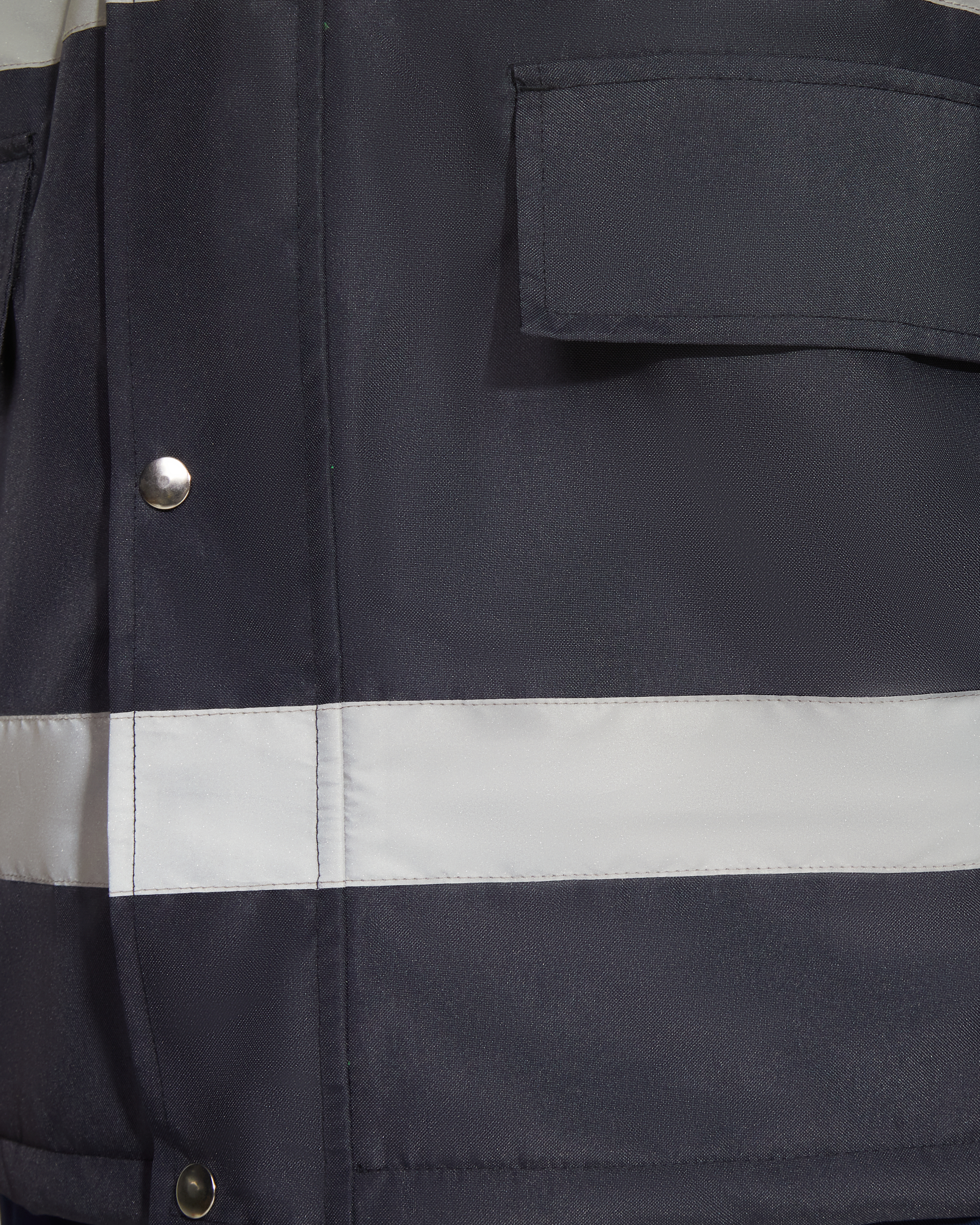 · Dos bandas reflectantes horizontales en torso y mangas y verticales en hombros.