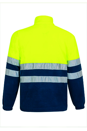 Chaqueta de alta visibilidad, confeccionada en tejido polar anti-peeling, de alto efecto calórico. Cuello alto con cremallera frontal entera. Puños elásticos y dos bolsillos delanteros con cremallera. Incluye dos bandas de material retrorreflectante cosidas en el contorno de la prenda por debajo del pecho y otras dos en cada manga. Disponible en un amplio colorido.