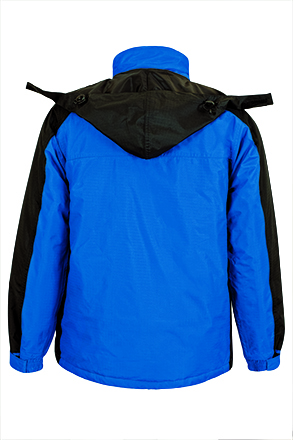 Chaquetón de abrigo en colores combinados, confeccionado en tejido técnico exterior Ripstop, recubierto de PVC con tratamiento impermeable, relleno acolchado y forro liso interior. Incluye tejido polar en cuello y bolsillos. Cuello alto y cierre con cremallera frontal. Cordón regulador interior (cordón solo en las tallas de adulto) y puños con elástico y velcro. Capucha con cordón oculta en el cuello. Dos bolsillos bajos con cremallera y dos bolsillos en pecho con cremallera. Dos bolsillos interiores. Costuras termoselladas que impiden el paso del agua. Cremallera interior para facilitar el marcaje. Bandas en color a contraste en hombros, mangas y costados.