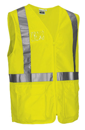 Confeccionado en tejido ketten transpirable y resistente, incluye dos cintas retro-reflectantes verticales cosidas en los hombros y una horizontal en el torso y también en la espalda, que aumentan la visibilidad de los usuarios.
