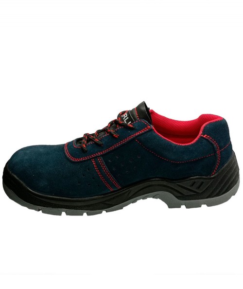 Zapato de seguridad S1P fabricado en piel serraje azul.