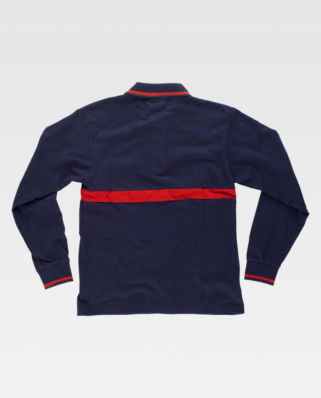 Polo combinado de manga larga en tejido piqué de algodón. Cuello clásico con tapeta de tres botones y cubrecosturas interior. Una franja combinada en pecho y espalda. Tejido fresco y poroso que permite una adecuada ventilación. Cuello y puños en punto canalé con franja a contraste.